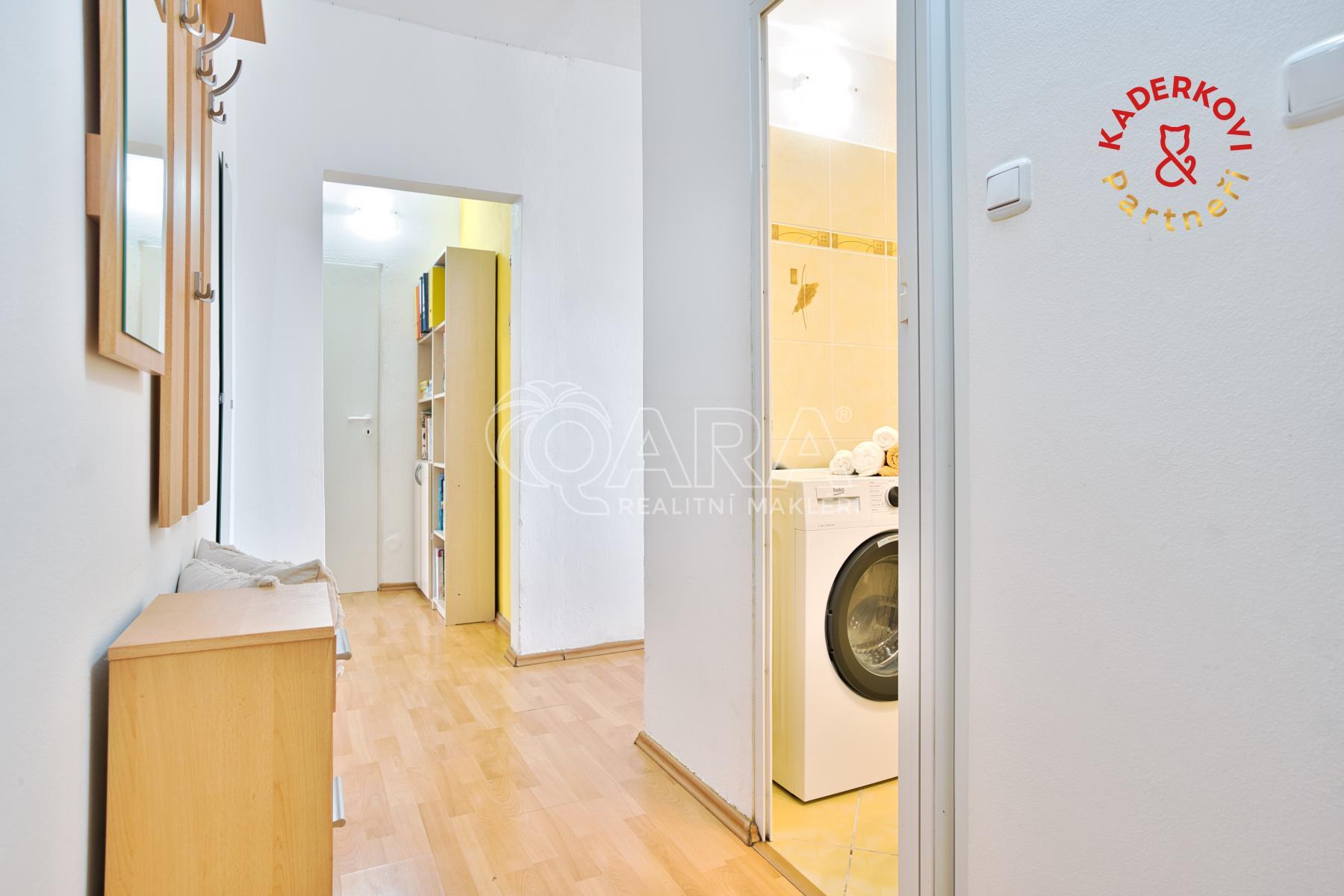 Vedlejší pokoj má přímý vstup na lodžii (cca 4,5 m and sup2;) s výhledem na travnatou plochu a klidné náměstí ideální jako ložnice či dětský pokoj. K pohodlí přispívá koupelna s vanou a oddělená toaleta. V bytě se navíc nachází i praktická komora (cca 2,8 m and sup2;), která poslouží jako šikovný úložný prostor. K bytu náleží také sklepní kóje (cca 2 m and sup2;).
