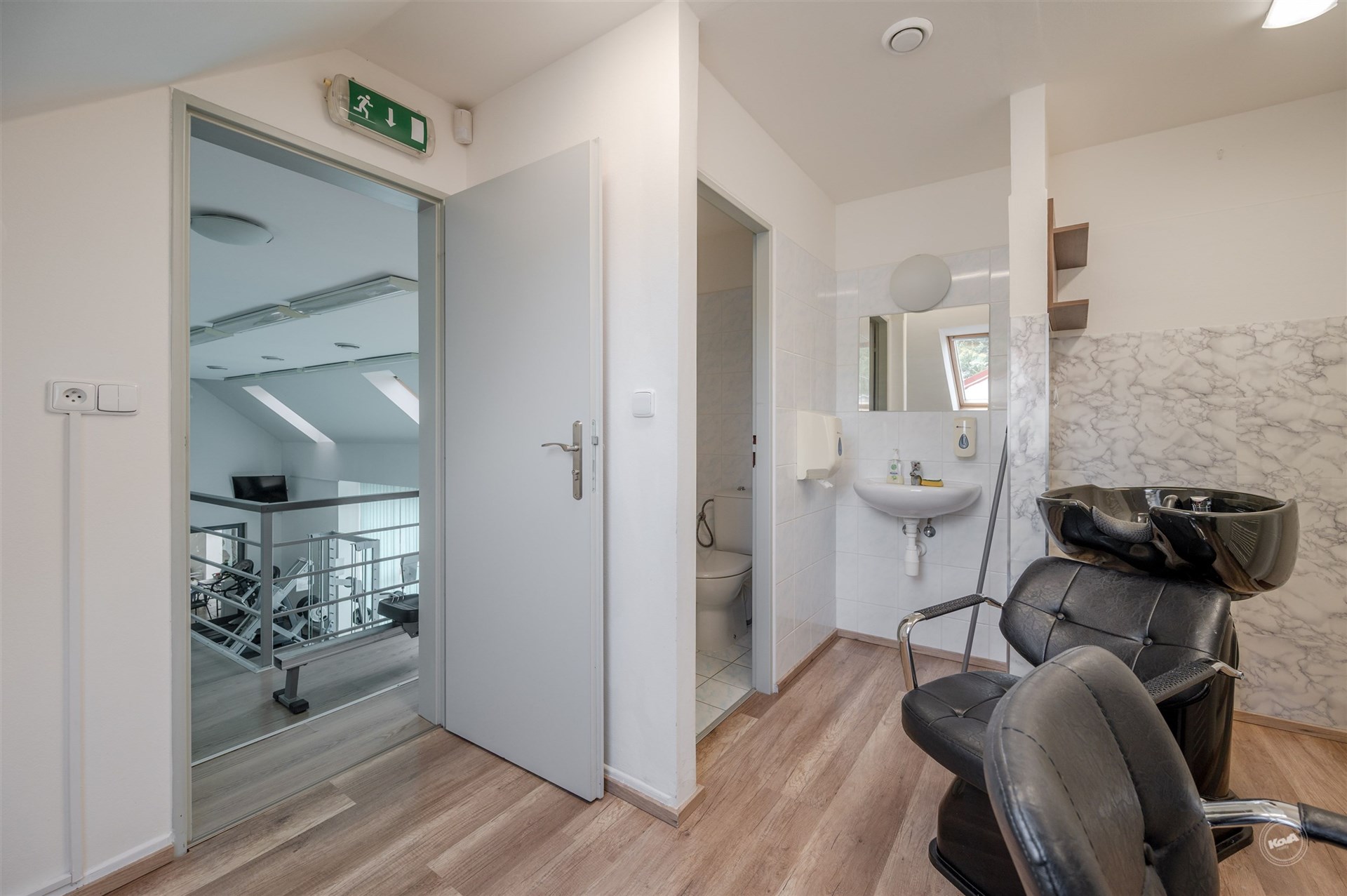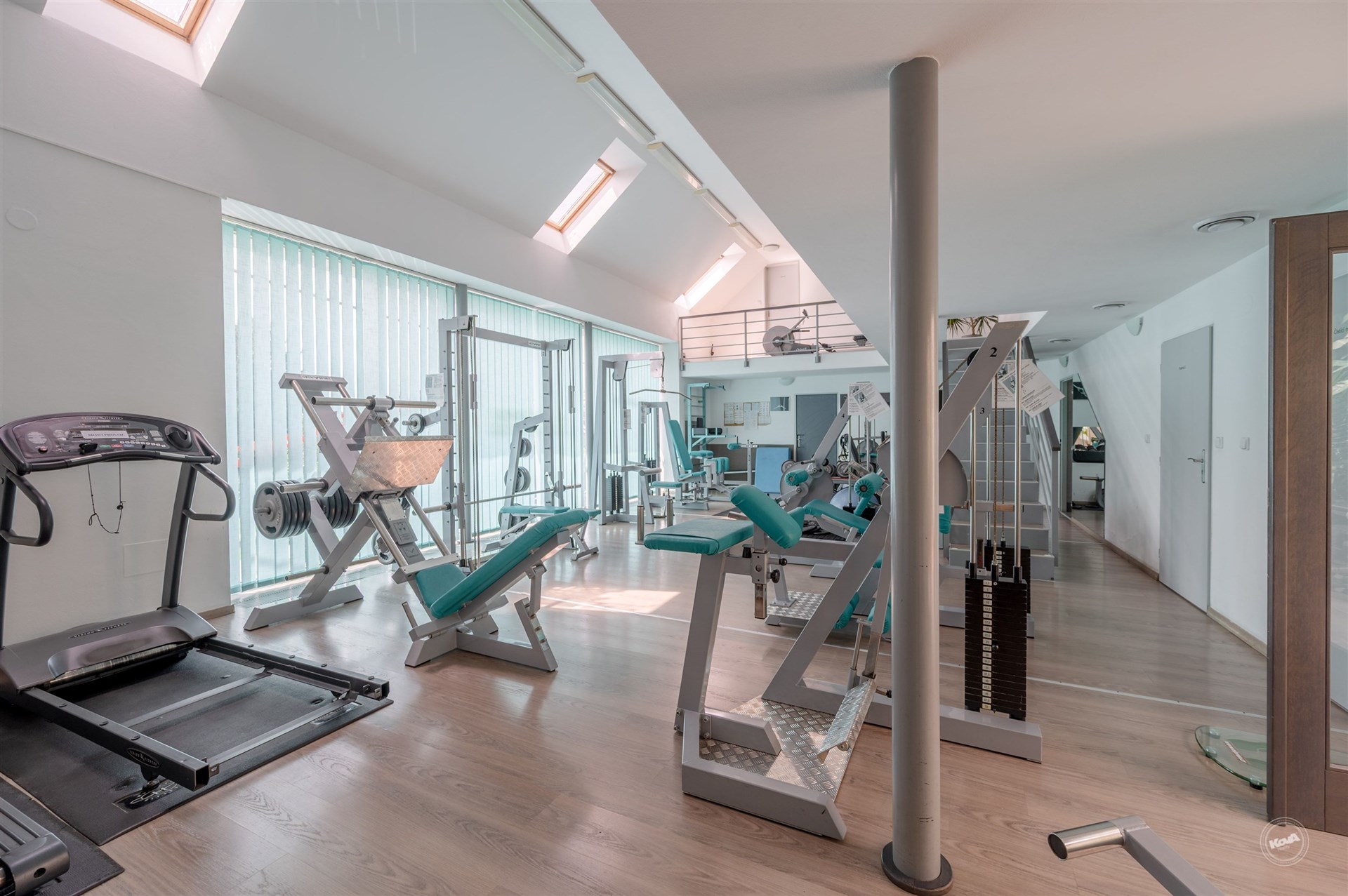 Dispozice budovy nabízí v přízemí vstupní halu s recepcí, variabilní prostory vhodné pro vybudování pokojů, šatny a kompletní sociální zázemí včetně bezbariérového WC. Velká prosklená stěna zajišťuje dostatek denního světla a příjemné propojení s venkovní částí. Podkroví tvoří otevřená galerie a další místnosti, které lze efektivně využít jako ubytovací jednotky, zázemí pro personál či administrativní část.
