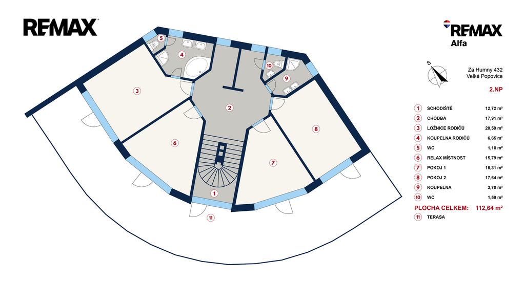 • vstup na prostornou terasu (cca 80 m²) z každé ložnice