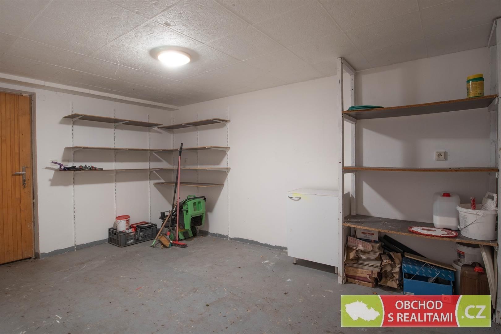 Přízemí domu nabízí sklad s regály, technickou místnost s vanou "pro psa", garáž pro jeden automobil a prostorné zádveří.