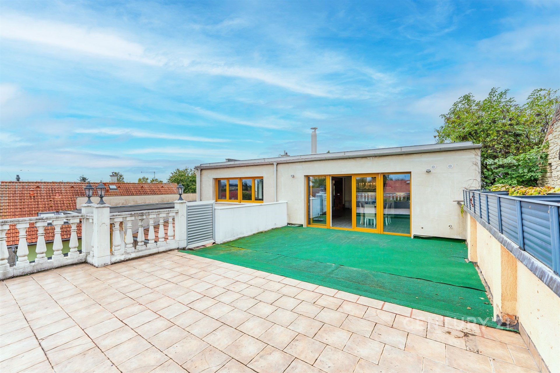 Z obytné části se vychází na dvě terasy, které přirozeně propojují interiér s exteriérem. Jednu z nich je možné upravit nebo přestavět na zimní zahradu – ideální místo pro celoroční odpočinek. Horní patro je navíc stavebně připravené i pro samostatný vstup na zadní zahradu, což umožňuje v budoucnu oddělit prostor pro vícegenerační bydlení nebo pronájem.