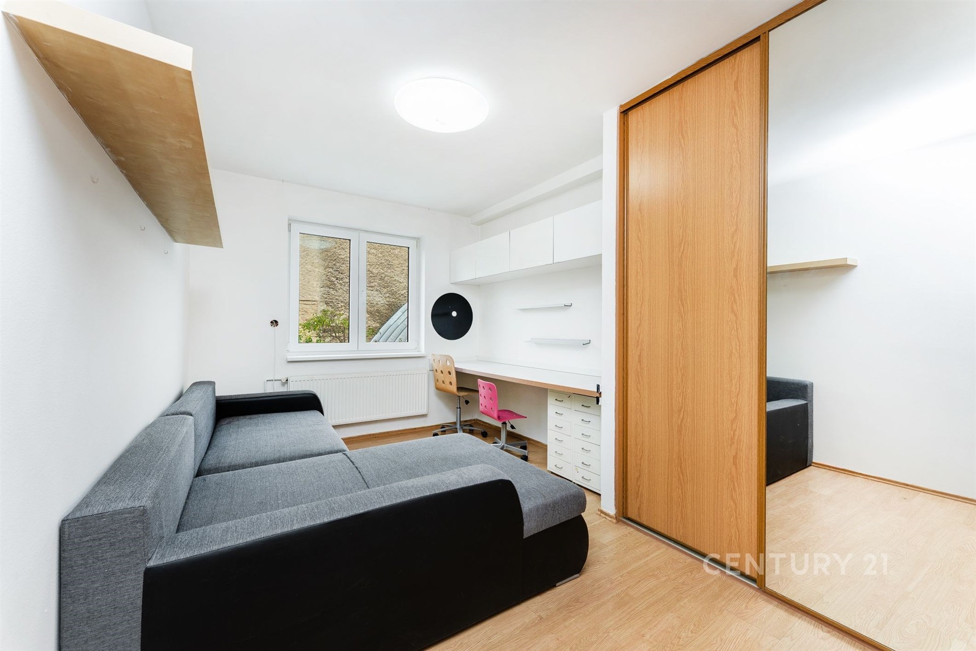 V obytné části domu najdete čtyři ložnice a dvě koupelny, přičemž jedna z ložnic je umístěna v přízemí – ideální volba pro hosty, seniory nebo pro ty, kdo chtějí mít pracovnu oddělenou od hlavního patra. Z této ložnice je navíc přímý vstup na zadní zahradu, což zajišťuje příjemné propojení interiéru s exteriérem.