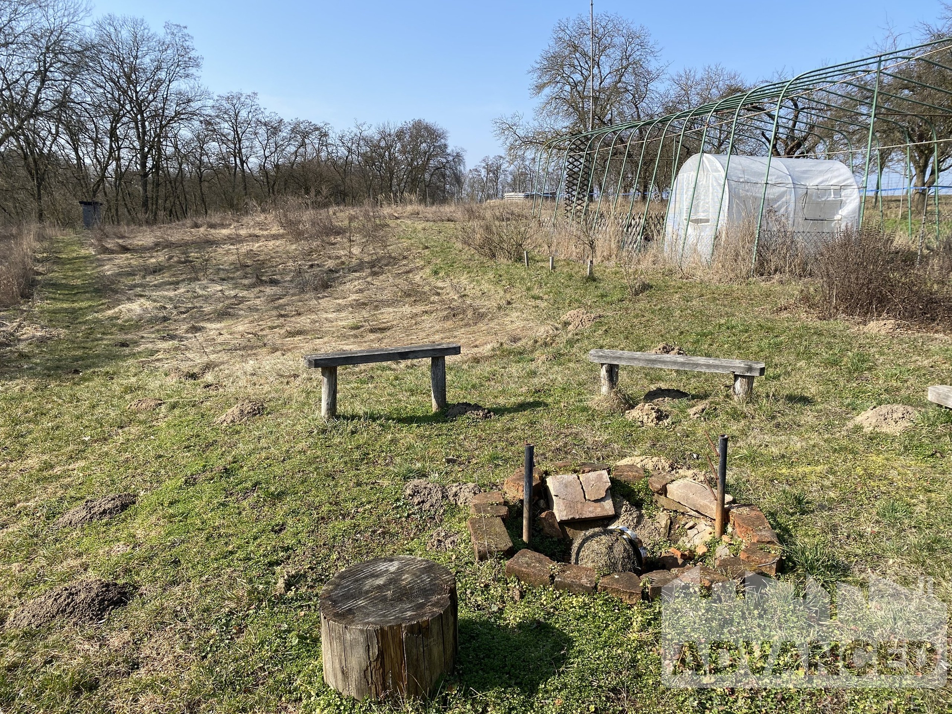 Dále je zde dílna se zavedenou elekřinou, sklep, suché WC, přístřešek na dříví a kostra fóliovníku. Pozemek je obehnaný drátěným plotem a je zde kovová vjezdová brána.