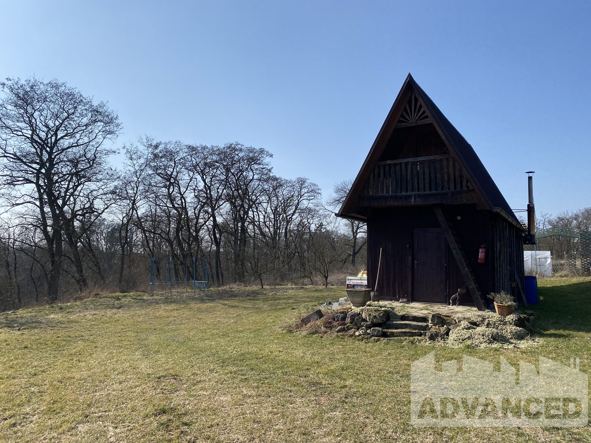 Na pozemku se nachází dřevěná chata se zavedenou elektřinou a vodovodem, odpadní vody jsou řešené do jímky. Ve spodní části je pokoj s vybaveným kuchyňským koutem (myčka, dřez), pračkou, sprchovým koutem, kamny a francouzskými okny (plastové) vedoucími na krytou terasu. V horní části, která je přístupná vnějším schodištěm, je ložnice (4 lůžka). Ohřev vody je zajištěn elektrickým bojlerem.
