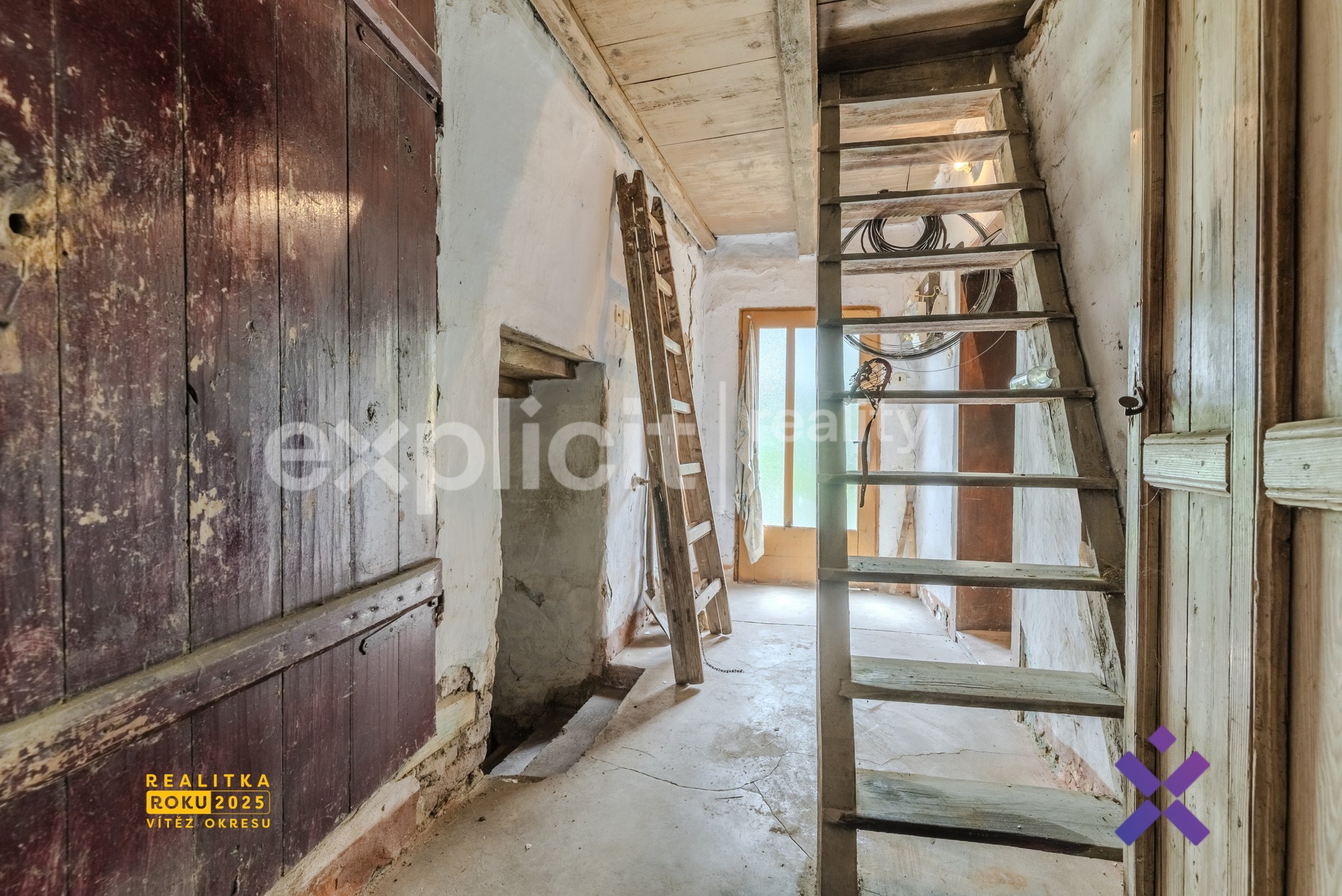 - starší dům o dispozici 1+kk – hlavní místnost 35 m², dále sklep14 m² a komora 20 m², jedno podlaží