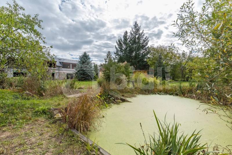 Tento rodinný dům stojí na rozlehlém pozemku o výměře 2504m2, který skýtá mnoho možností. Na pozemku se nacházejí tři jezírka, která dodávají zahradě jedinečný charakter a mohou být upravena pro relaxaci. Vzrostlá zeleň zajišťuje soukromí a pocit naprostého klidu. Navíc je zde dostatek místa na bazén či venkovní posezení, takže si můžete vytvořit vlastní oázu pro relaxaci a společenské akce.