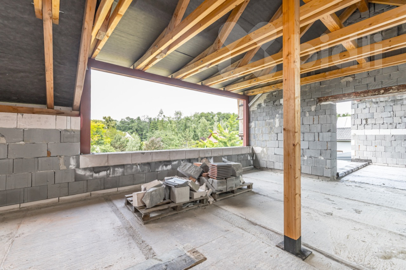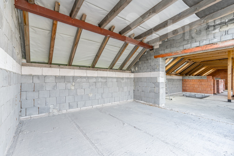 Dům je navržen pro dvougenerační bydlení, což znamená dvě samostatné bytové jednotky o dispozici 4+1. První jednotka nabízí pohodlí dvou koupelen a dvou šaten, které zajistí dostatek úložného prostoru. Druhá jednotka se pyšní terasou s výhledem do zahrady, garáží a dokonce ateliérem či dílnou - ideální pro vaše koníčky nebo práci z domova.