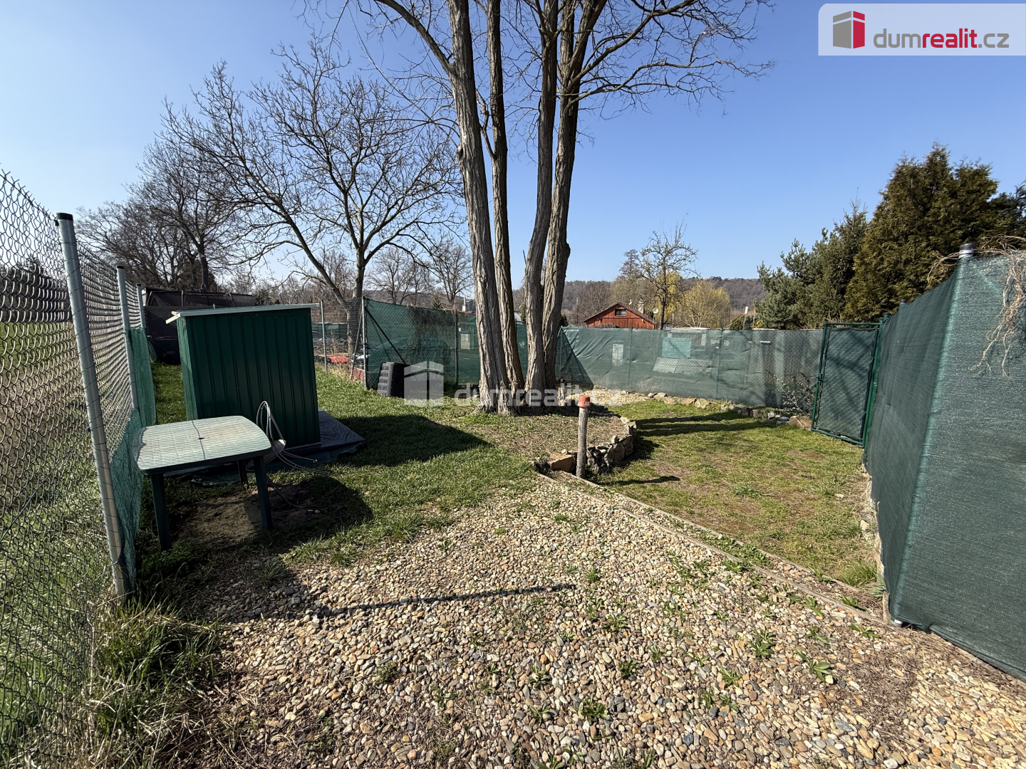 Zahrada je pravidelně udržovaná, nachází se zde vzrostlý strom a okrasná skalka, které vytvářejí příjemné prostředí pro relaxaci. Pozemek je ideální pro rekreaci, odpočinek nebo zahradničení.