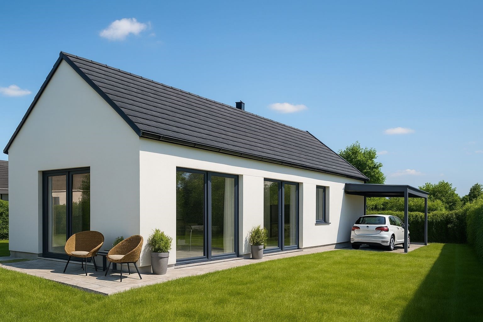 Moderní rodinný dům nabízí nadstandardní technologie, kvalitní materiály a pohodové rodinné bydlení v dojezdové vzdálenosti do Prahy. Dům je proveden ve stavu White Wall, takže styl interiéru si určujete sami – vyberete si standard dokončení a stavitel jej osadí před předáním.