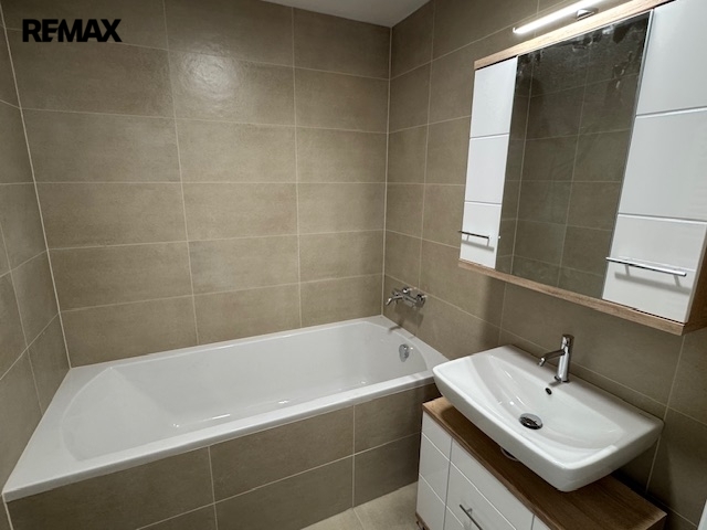 Při vstupu do bytu se nachází prostorná předsíň s vestavěnou šatní skříní, samostatná toaleta, prostorná koupelna s vanou. Vedlejší místnost slouží jako malá komora s přívodem pro pračku a dostatkem místa pro sušičku. Obývací pokoj je propojený s kuchyní, což vytváří příjemný otevřený prostor pro rodinné setkání a relaxaci. Kuchyně je vybavena kuchyňskou sektorovou linkou včetně spotřebičů a lednicí s mrazákem, což usnadňuje každodenní vaření.