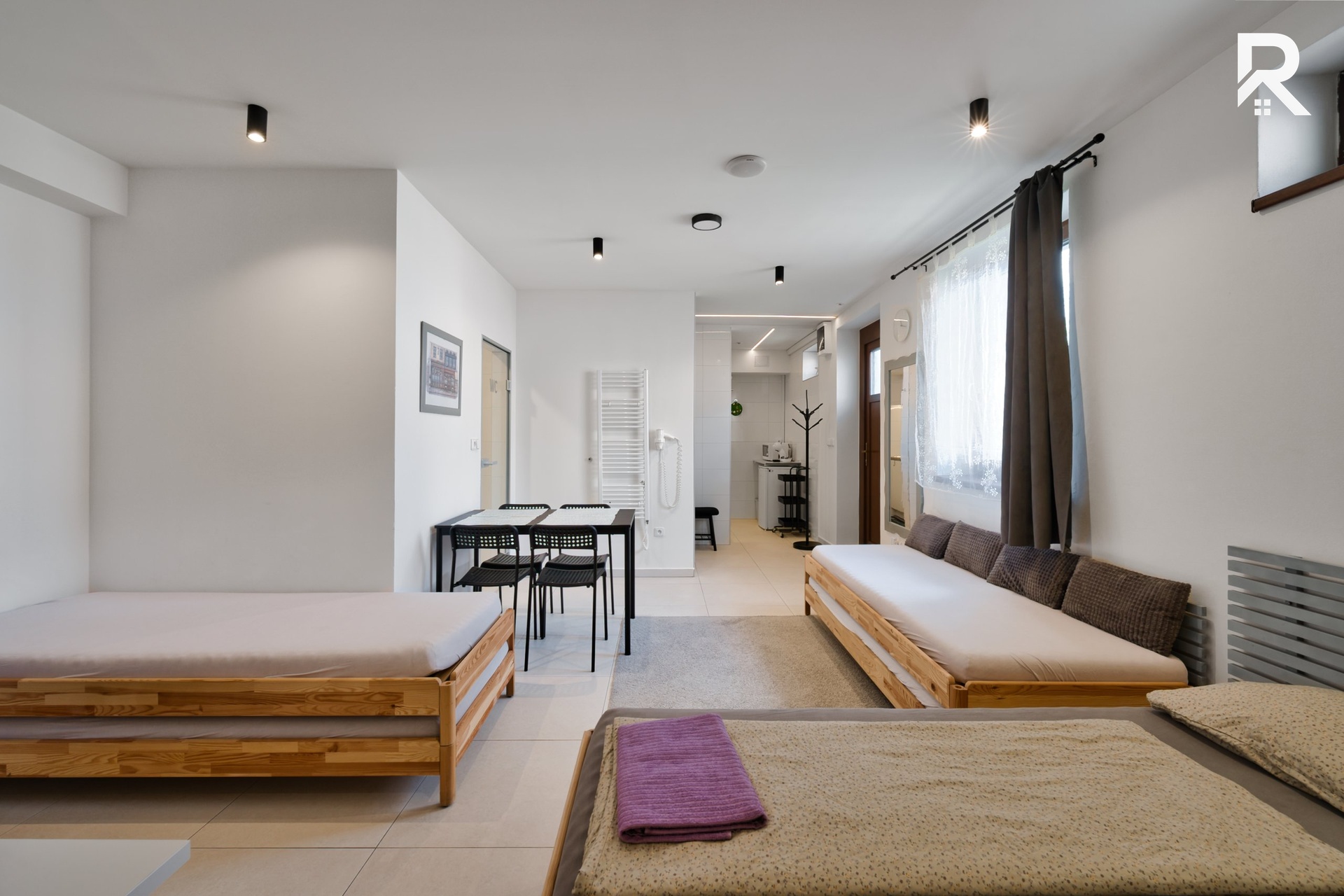 Součástí objektu je také plně zařízený apartmán s kapacitou až 4 lůžek, který je využíván ke krátkodobému pronájmu. Ten přirozeně doplňuje wellness služby a zvyšuje celkovou atraktivitu projektu. Celý objekt prošel nákladnou a kompletní rekonstrukcí, po které byl v roce 2020 uveden do provozu. Vytápění je řešeno ústředním systémem s tepelným čerpadlem, což přispívá k efektivnímu a úspornému provozu.