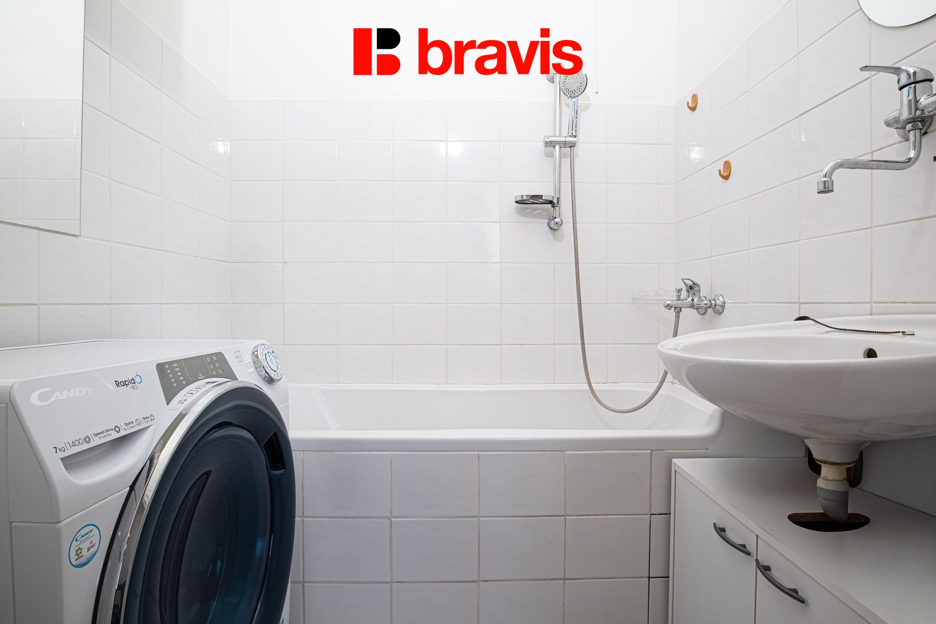 Koupelna je zděná a nabízí prostor pro umístění pračky.