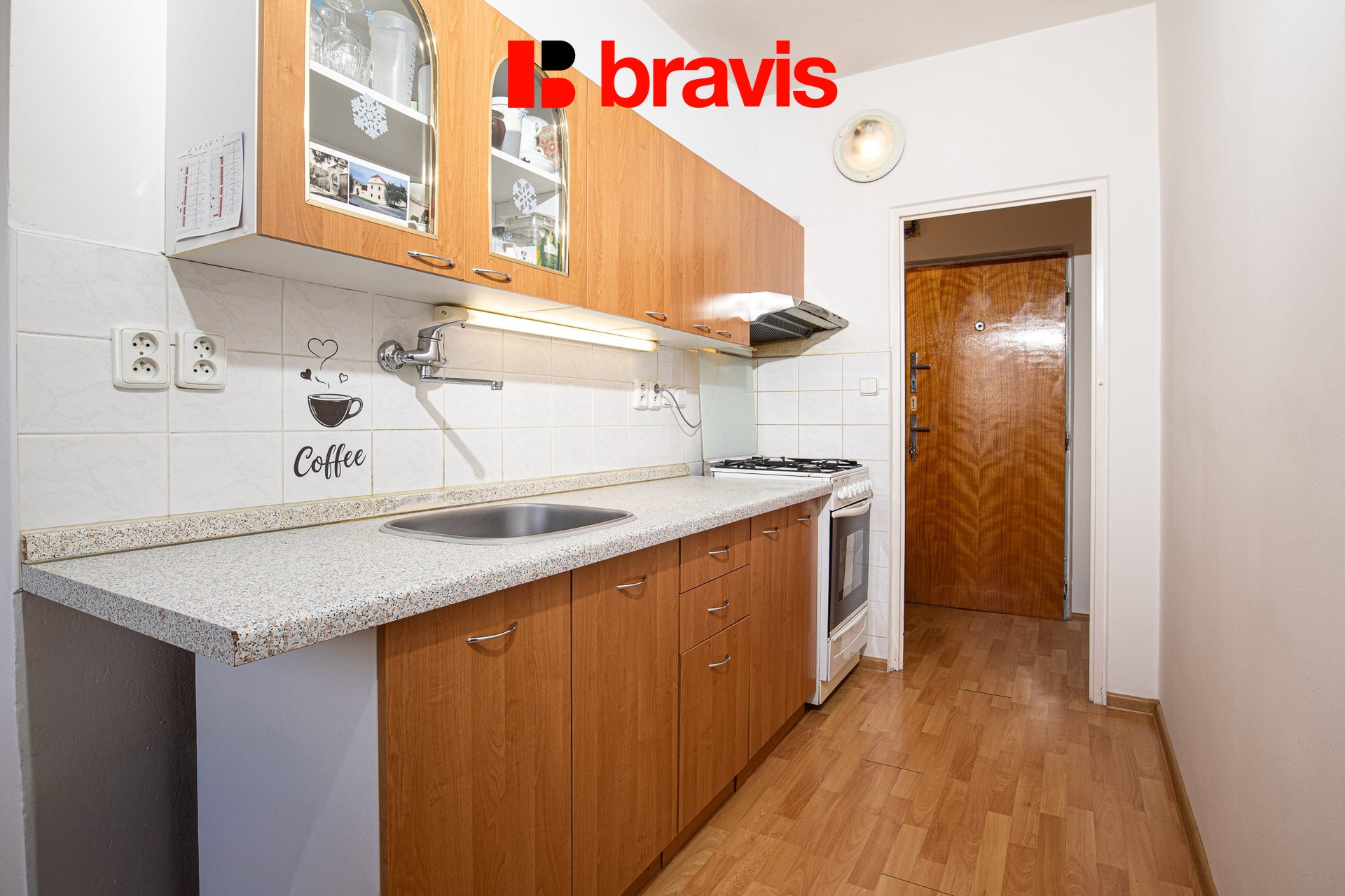 Po vstupu do bytu se dostanete do chodby, ze které je vstup do kuchyně a na samostatnou toaletu.