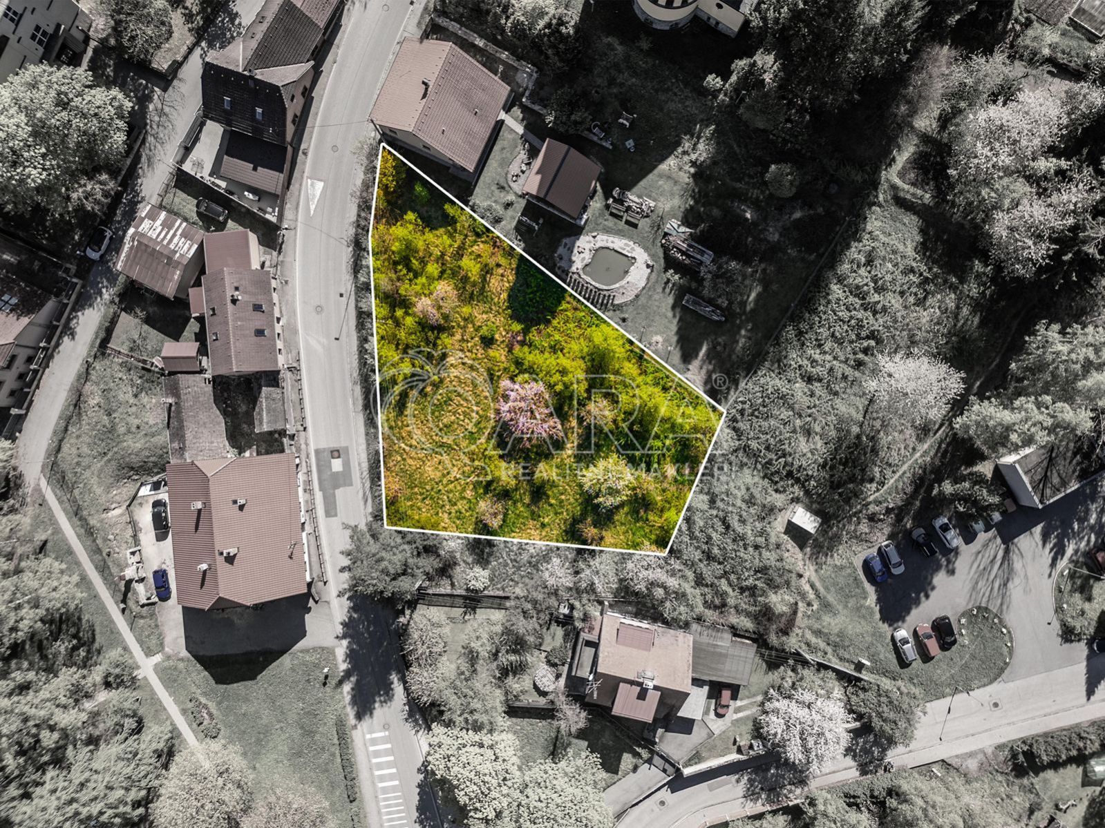 Pozemek je umístěn takřka vedle krásného kostela a přestože se nachází vedle silnice, díky množství zeleně, která ho obklopuje, si budete připadat jako na polosamotě. Terén pozemku je mírně svažitý. Na pozemku se nachází vzrostlá zeleň.