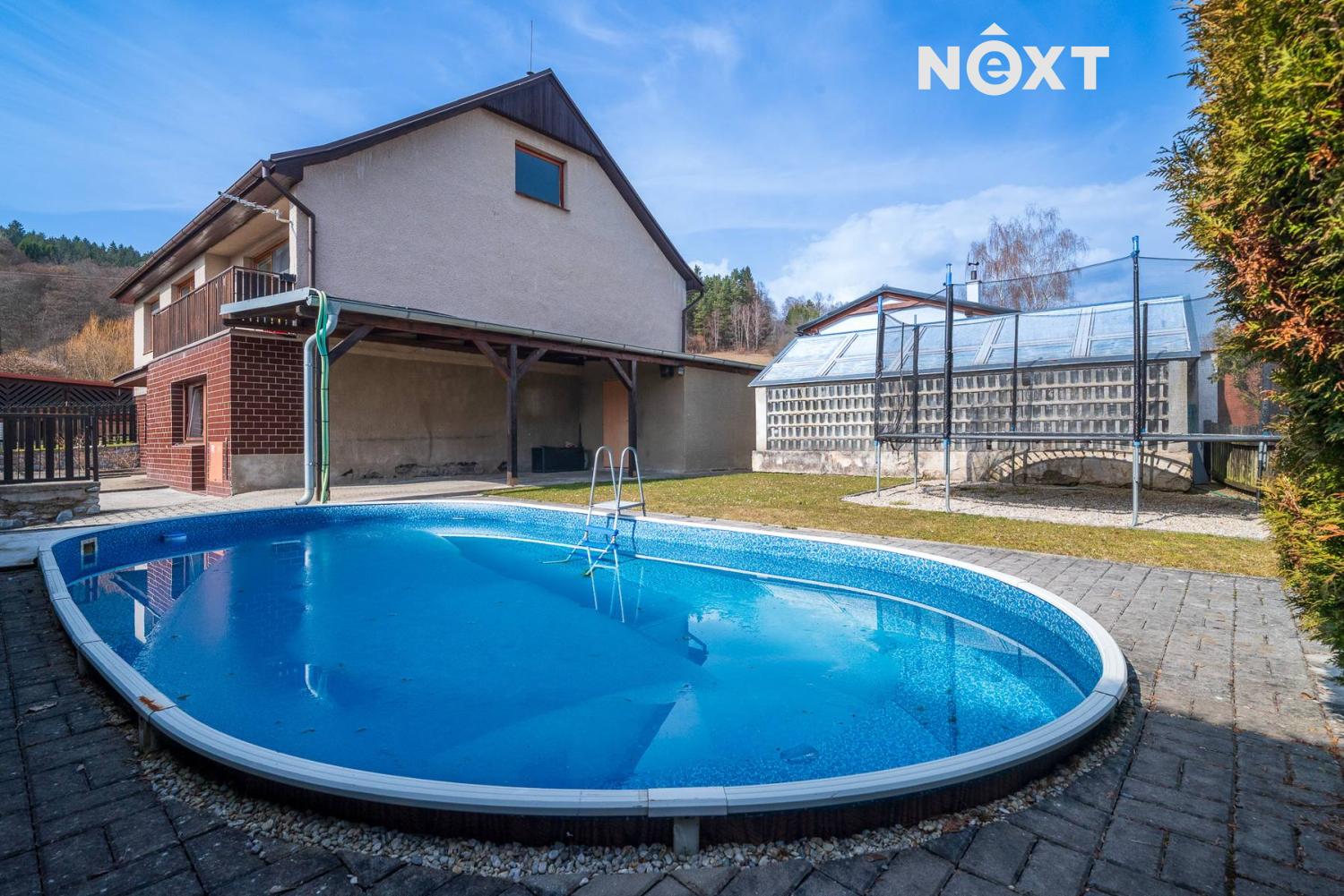Na pozemku o celkové výměře 1 085 m² se nachází velká pergola vhodná pro posezení s rodinou či přáteli, bazén a také dostatečně velký skleník pro milovníky zahradničení. Velkou výhodou jsou dva samostatné přístupy na pozemek.
