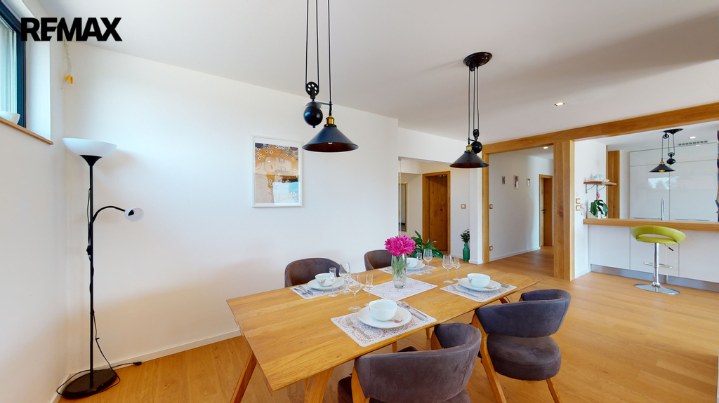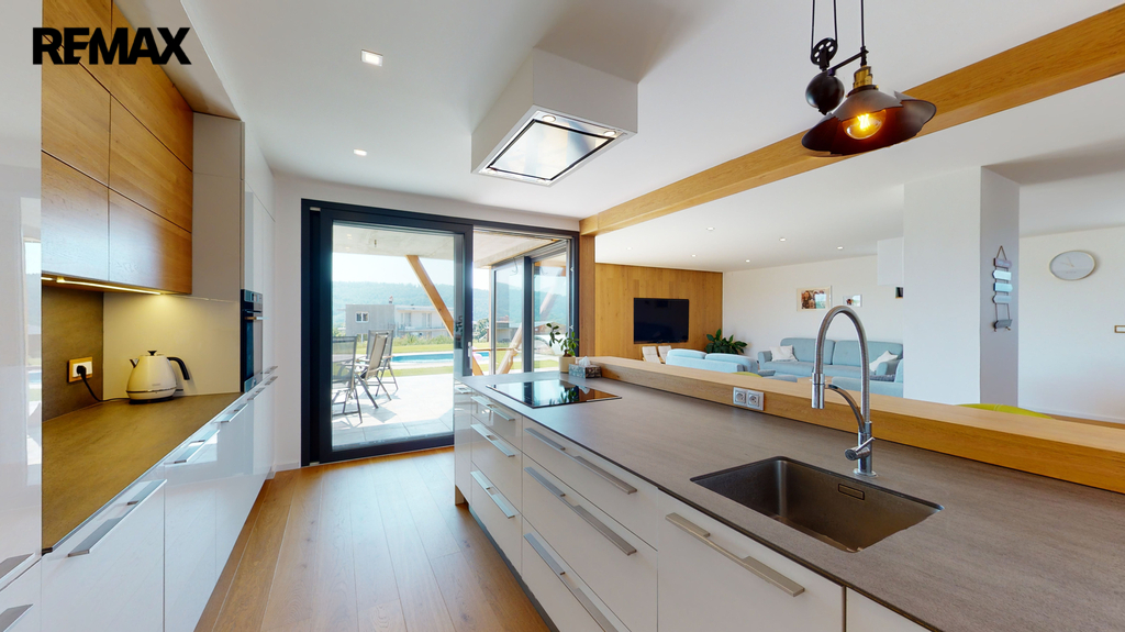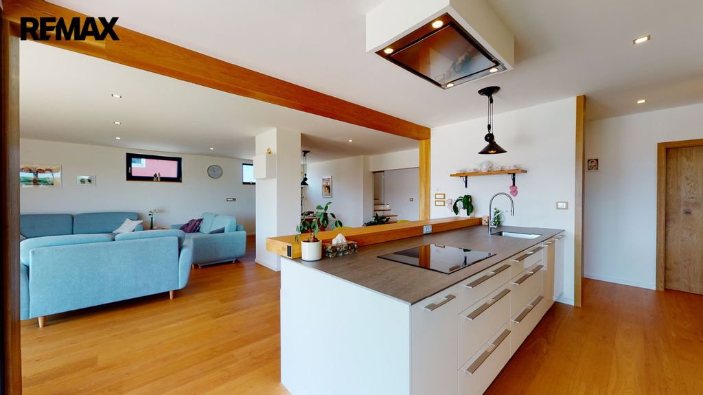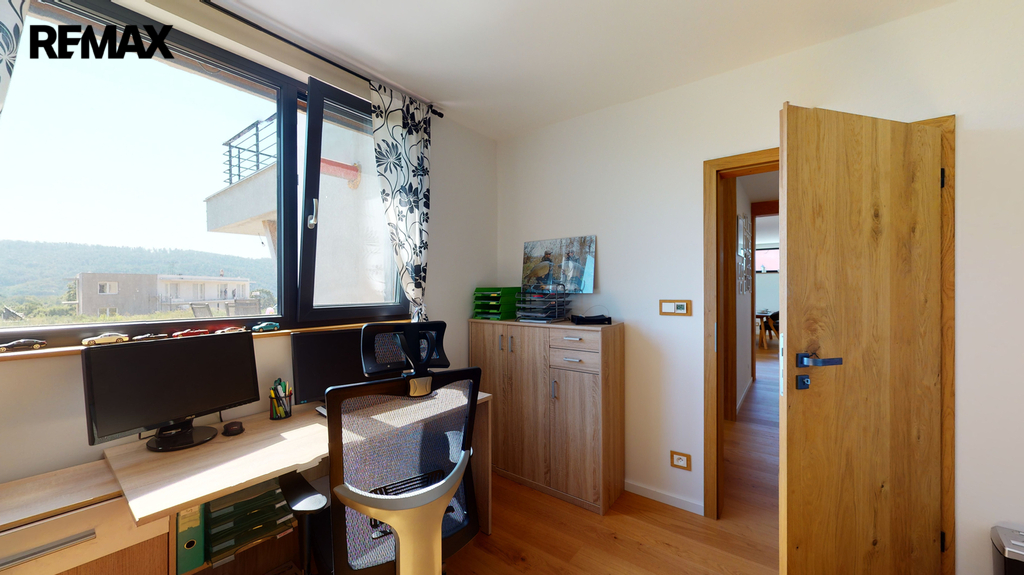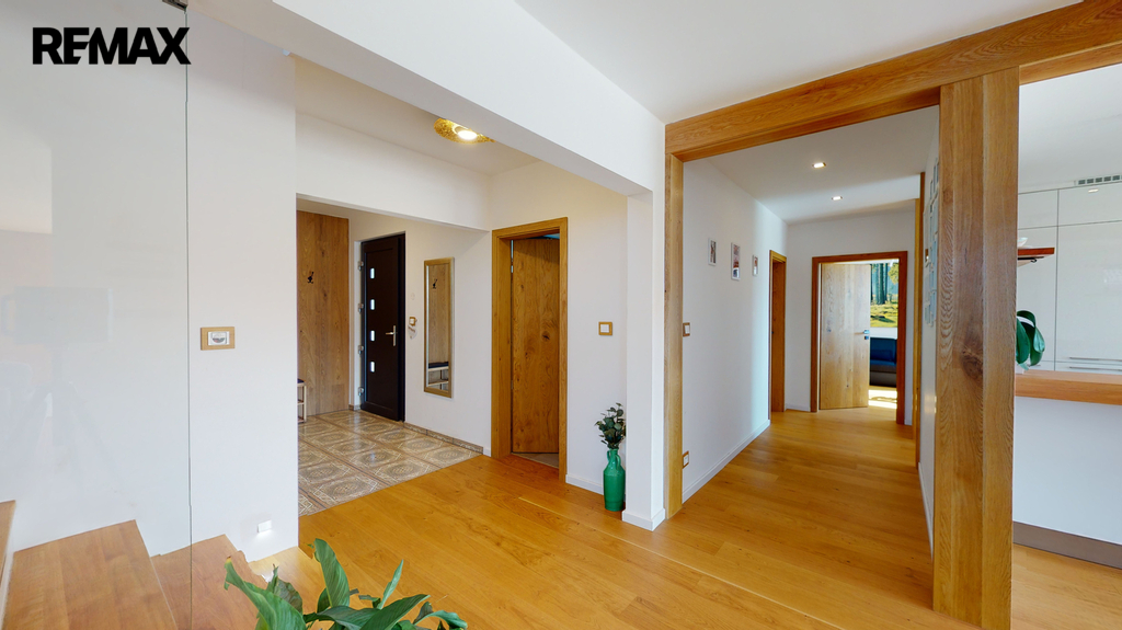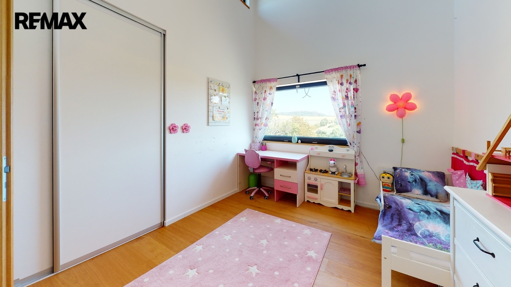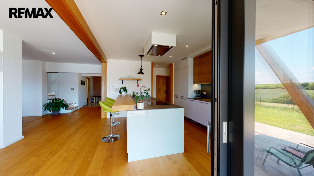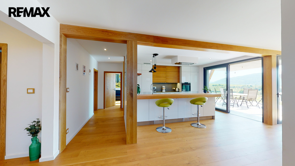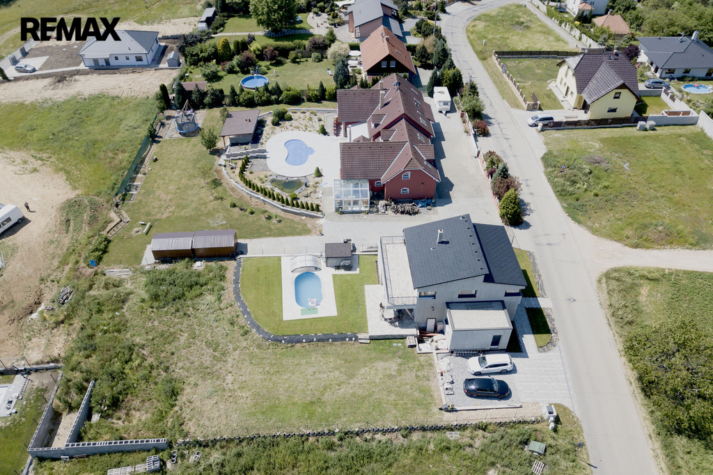 Dům byl zkolaudován v roce 2019 a je zhotoven ve vysokém nadstandardu, zahrnující kompletně vybavenou kuchyňskou linku s keramickou deskou ( spotřebiče AEG + Whirlpool ), v hodnotě 600 000,-Kč, dubové podlahy, schody, obklady, parapety, dveře, sanita značky Villeroy & Boch. V dětských pokojích, ložnici a šatně jsou instalované vestavěné skříně, v každém pokoji je vyvedena kabelová přípojka internetu, dále příprava na zabezpečovací zařízení, centrální vysavač a krb (zkolaudovaný komín). V domě je potřeba dokončit horní koupelnu, dále je realizována příprava ( kastlíky a elektrorozvody, ovládané přes tablet ) na vnější žaluzie, které stačí dokoupit a nainstalovat.