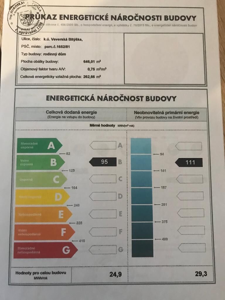 - Energetická náročnost budovy: B - Velmi úsporná