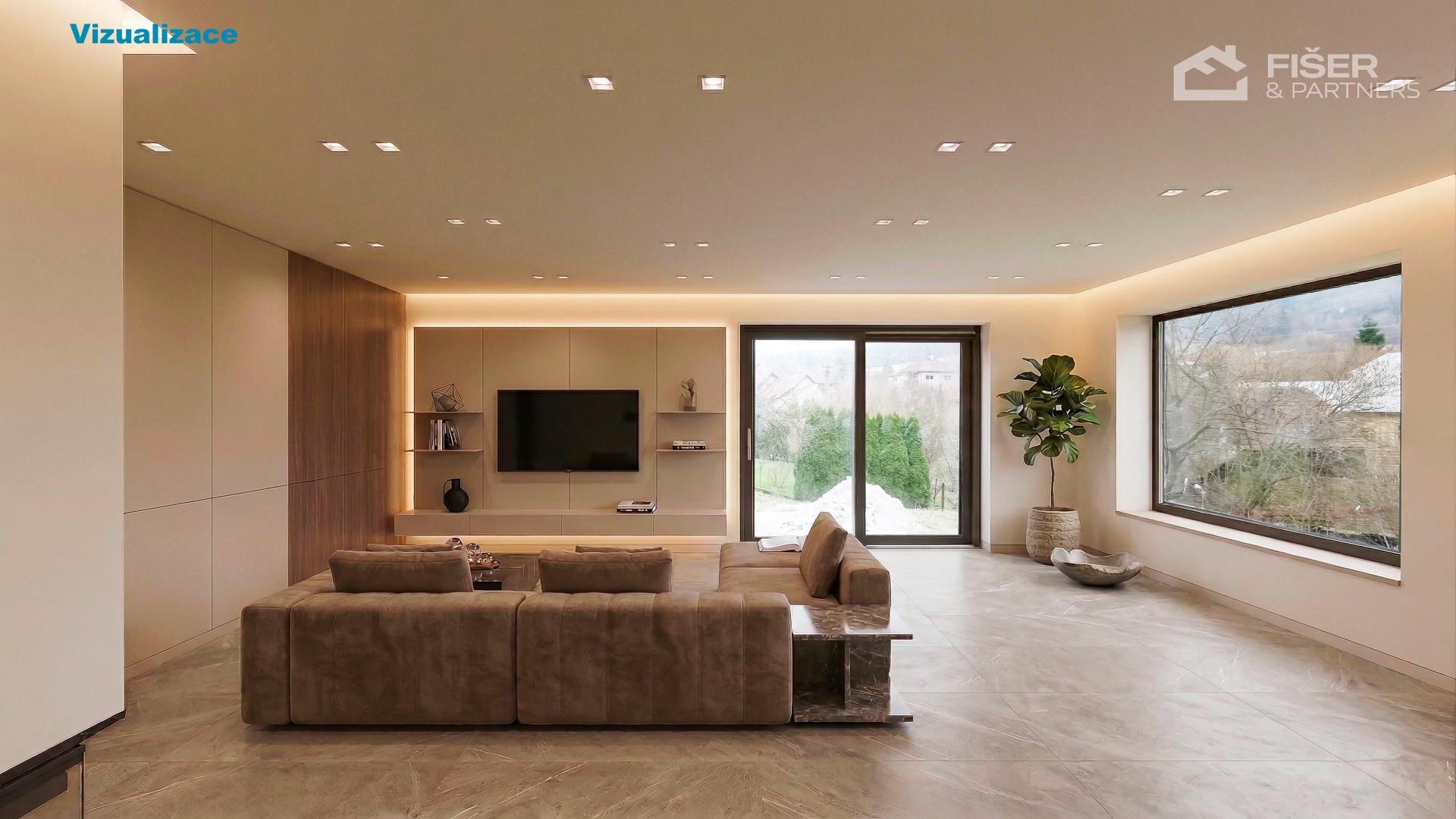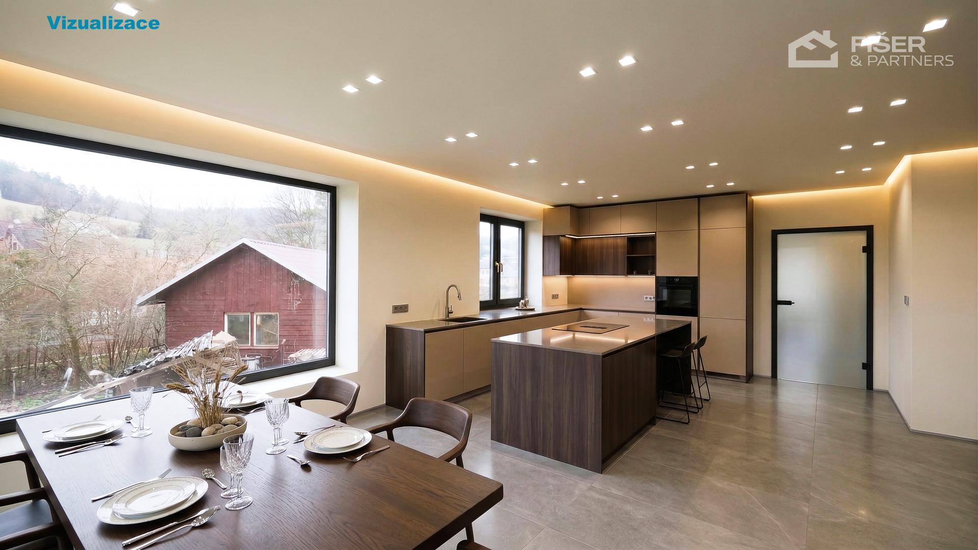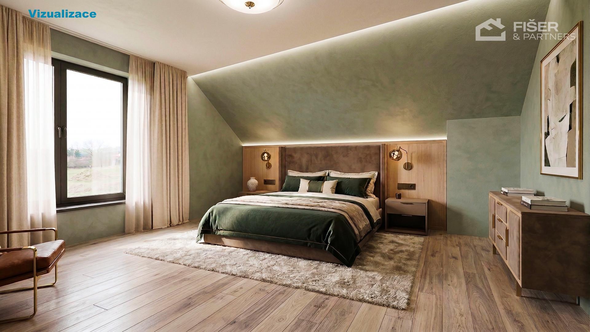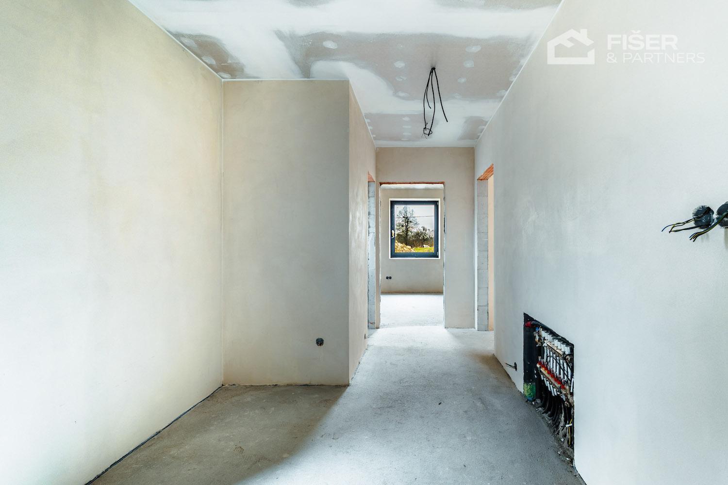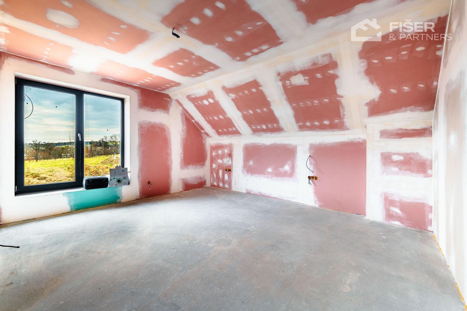 V 1. NP na Vás čeká prostorná vstupní chodba, samostatné WC, koupelna, dva pokoje (18,3 m2 a 9,6 m2) a rozsáhlý obývací prostor s jídelnou (49,16 m2) propojený s kuchyní a přímým vstupem na terasu. Po betonovém schodišti se dostanete do 2. NP, kde jsou umístěny tři prostorné pokoje 19,87 m2, 19,01 m2 a ložnice s vlastní šatnou o velikosti 38,43 m2.