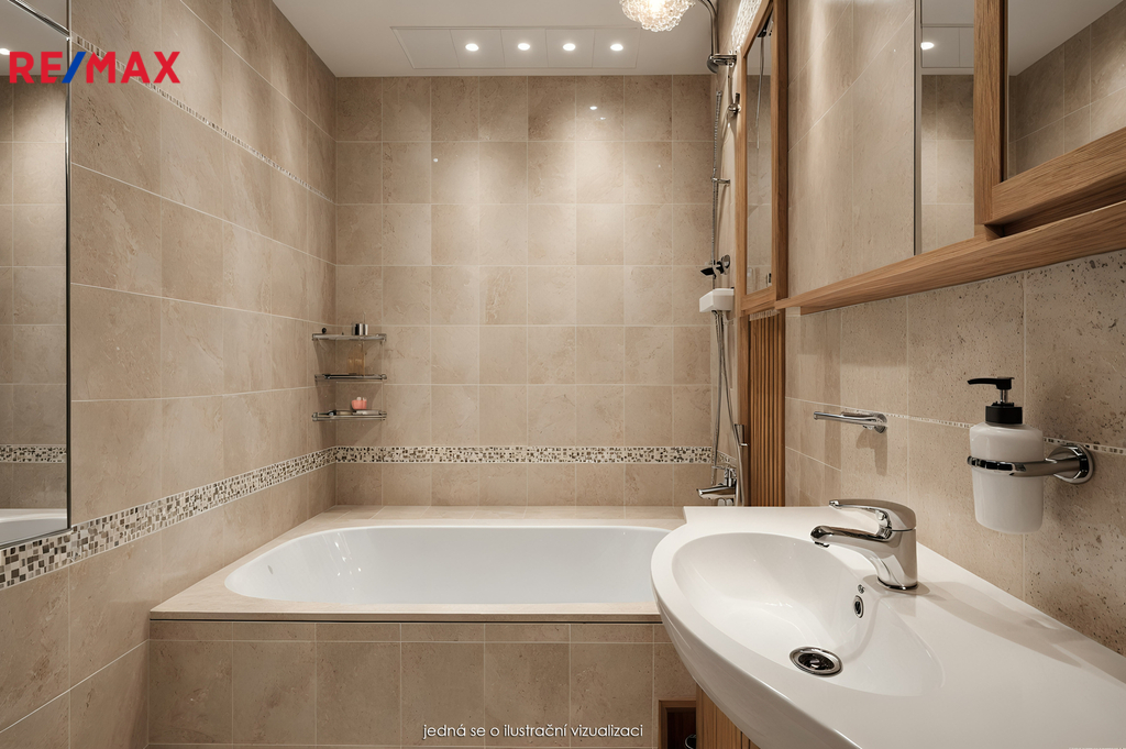 Byt má zděné jádro a velmi povedené dispoziční řešení: prostorná předsíň s dostatkem úložného prostoru, samostatná toaleta, koupelna s vanou, kuchyně, obývací pokoj, ložnice a dětský pokoj. Velkou výhodou je příjemný balkón pro relaxaci. K bytu náleží dvě sklepní kóje v přízemí domu a součástí domu je společná kolárna a sušárna. Byt má velmi nízké provozní náklady, což je velká přednost jak pro vlastní bydlení, tak i jako investici.
