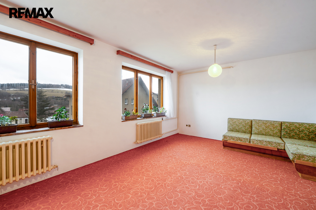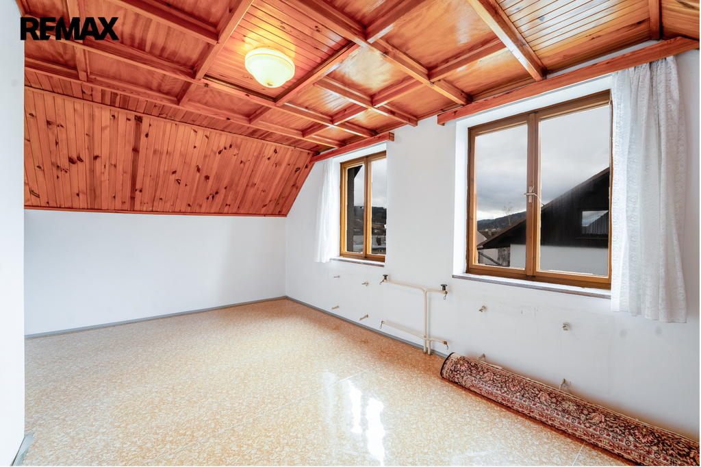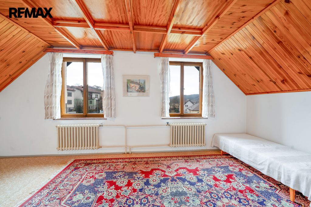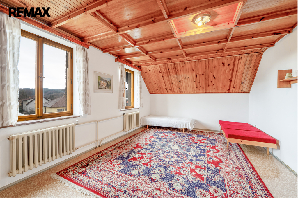 Dům nabízí dvě podlaží a podkroví. V každém podlaží se nachází bytová jednotka a to se samostatným vchodem. V podkroví se nachází další 4 samostatné pokoje, koupelna s vanou a samostatnou toaletu, tudíž zde by šla vytvořit třetí bytová jednotka 3+1. Z prostřední bytové jednotky je z obývacího pokoje přístupný velký rohový balkon, který můžete využít na chvilku odpočinku a relaxace třeba u šálku dobré kávy s krásným výhledem.