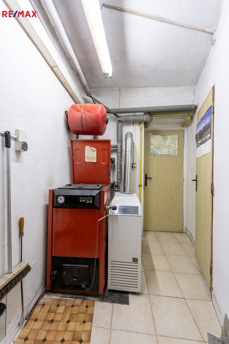 Napojeno na městský vodovodní a kanalizacační řád, přívod plynu. Topení zajišťuje plynový kotel a je možné také využívat kotel na tuhá paliva.
