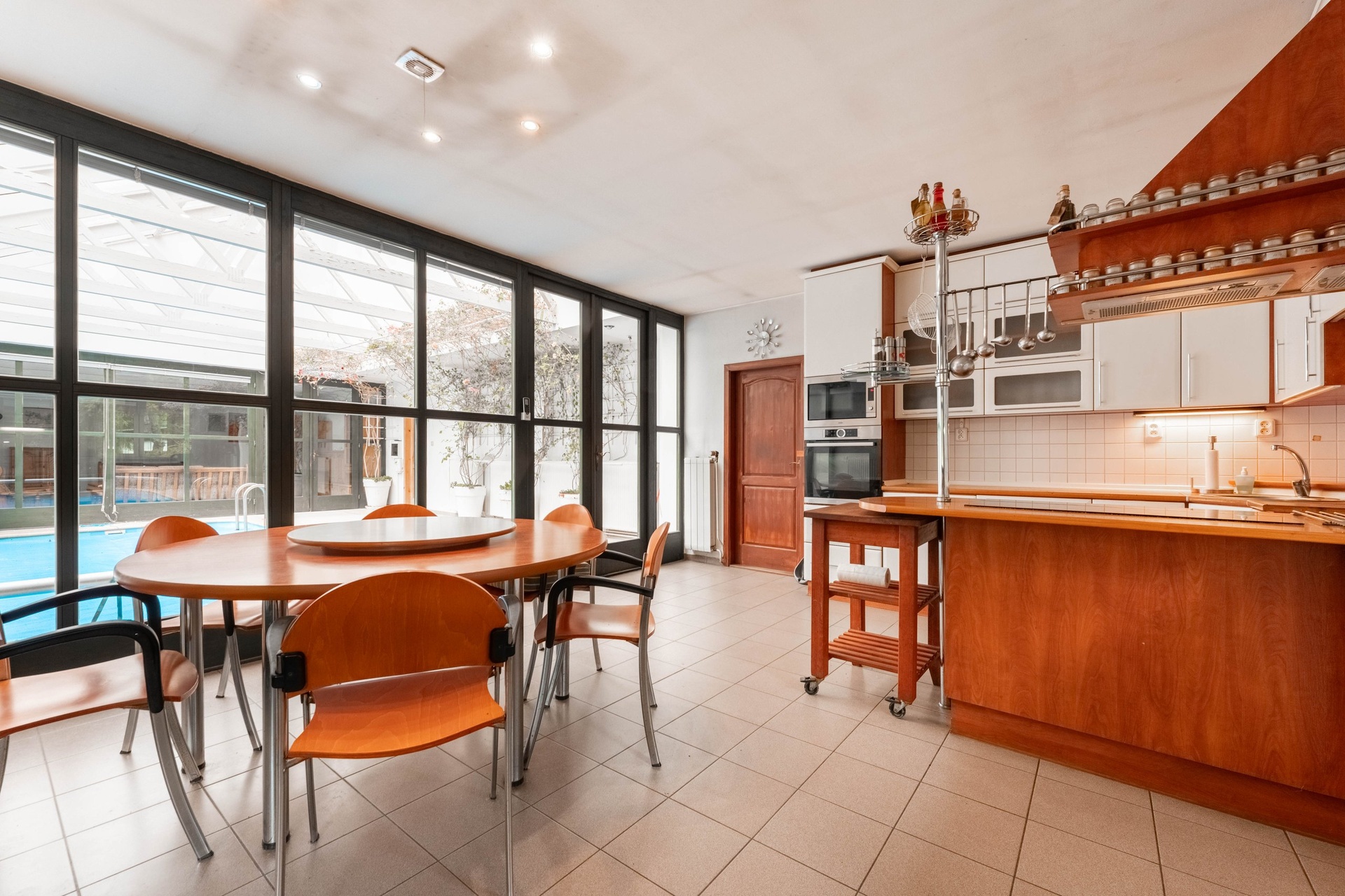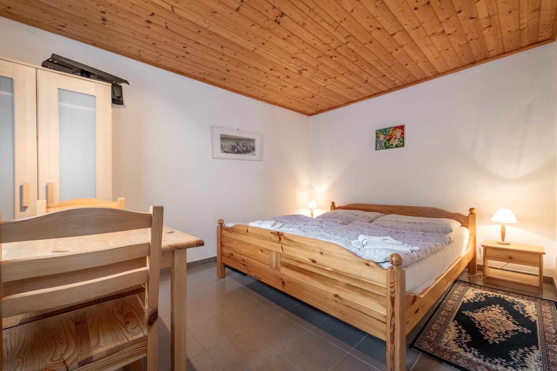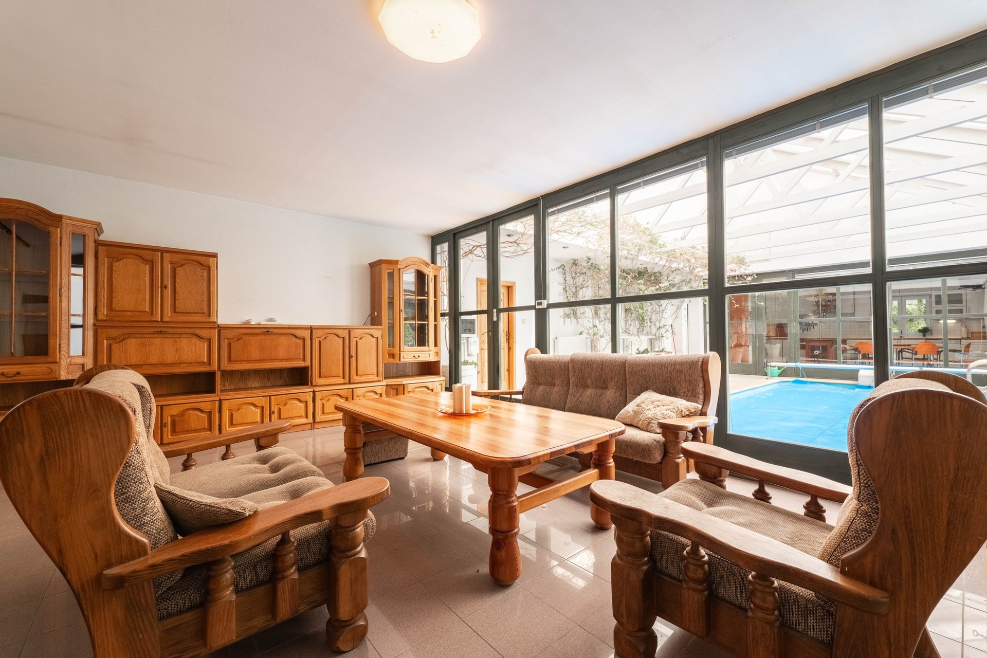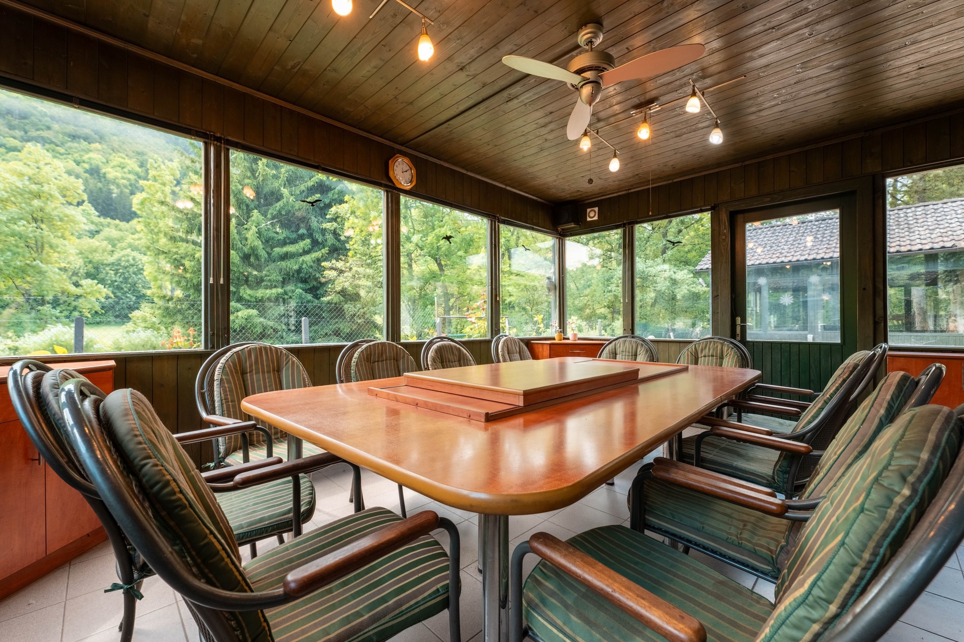 Hlavní dům disponuje třemi pokoji, kuchyní, společenskou místností a bazénovou halou. Je zde také možnost rozšíření o půdní vestavbu. Dále se na pozemku se nacházejí dva hostinské domy. První dům má dispozici 2+kk s vlastním sociálním zařízením, dílnou a černou kuchyní/přípravnou. Druhý nabízí dva pokoje a koupelnu s WC. Další vybavení zahrnuje stylové kryté posezení s krbem, grilem a udírnou. Samozřejmostí je kryté parkovací stání pro více aut a dále skleník.