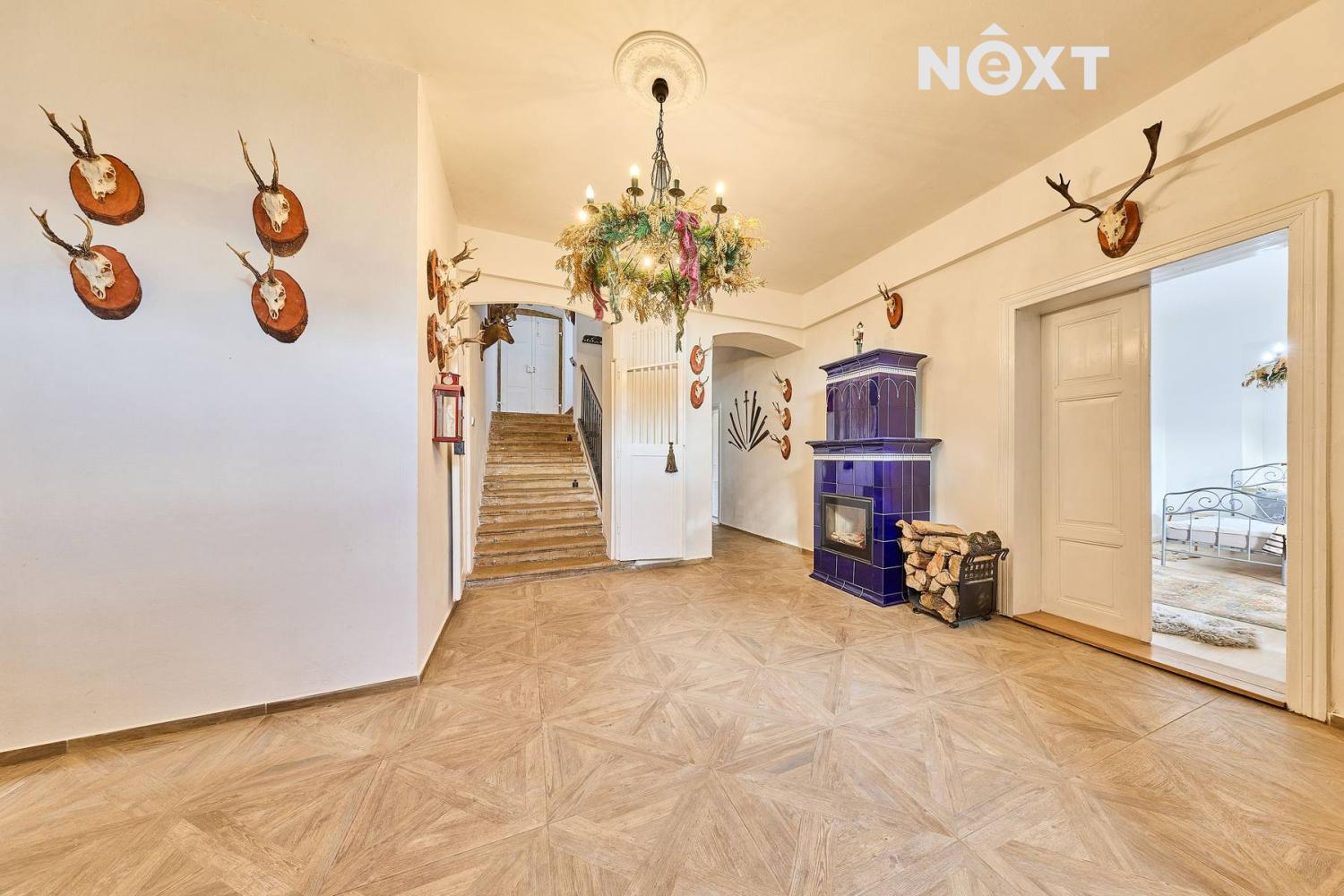 Interiéry působí elegantně a nadčasově, s vysokými stropy, prostornými místnostmi a prvky původní architektury, které podtrhují zámecký charakter stavby. Rekonstrukce byla provedena s ohledem na zachování ducha původní budovy, takže se zde spojuje historie s pohodlím současného bydlení.