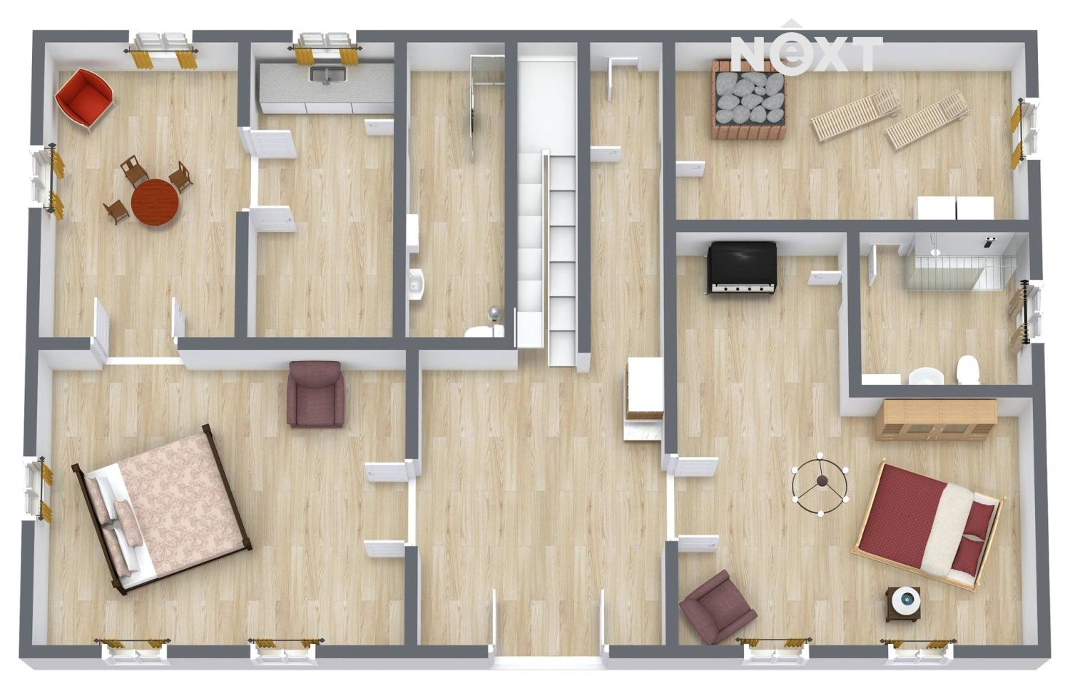 Nemovitost disponuje třemi samostatnými bytovými jednotkami – dvě jsou umístěné v přízemí a jedna velkorysá zabírá celé druhé patro. Tato dispozice nabízí široké možnosti využití: vícegenerační bydlení, kombinace bydlení a pronájmu, zázemí pro hosty či zaměstnance nebo spojení rodinného života s podnikáním.
