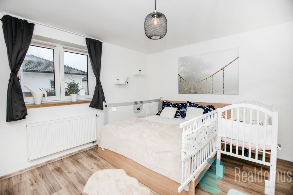 Z centrální chodby se dostanete do pracovny (11,5 m²) – ideální pro home office nebo pokoj pro hosty. Dále do prostorné koupelny (9 m²) s vanou, sprchovým koutem a WC, Klidný spánek budet mít v ložnici (16 m²).
