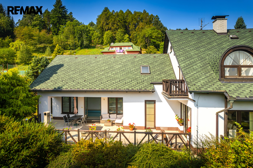 Tato prostorná a nadstandardně vybavená vila se nachází na okraji malebného města Vlachovo Březí, pouhých 800 metrů od historického náměstí. Dům je obklopen rozsáhlou zahradou o rozloze 4800 m² se vzrostlými stromy, včetně třicetiletých lip. Tato lokalita zajišťuje klid, soukromí i skvělou dostupnost služeb. Navíc 300 m od domu přírodní koupaliště s rekr. zázemí jako např. plážový volejbal, dětské hřiště