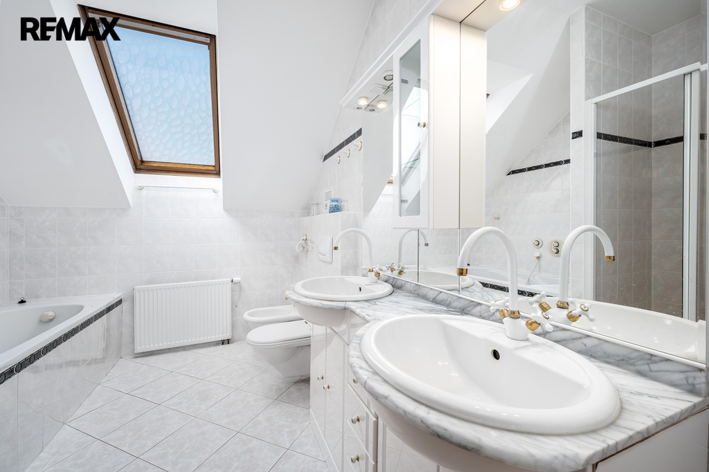 Dvě koupelny – jedna s vanou, WC a bidetem, druhá se sprchou a WC