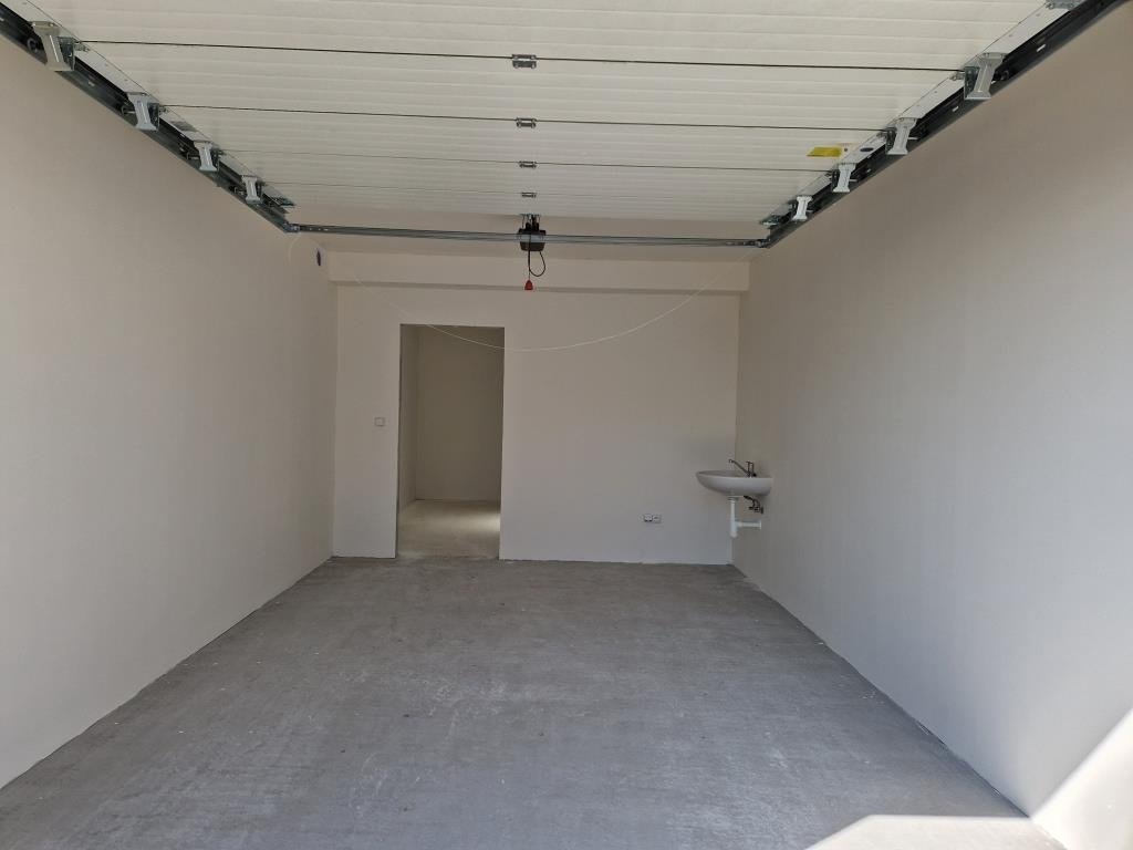 Přízemí (103,7 m2): garáž 21 m2 s umyvadlem, odvětráním, alarm pomocí magnetu na dveřích, zádveří 9 m2, pokoj 12,7 m2, WC se sprchovým koutem a umyvadlem 3,1 m2, komora – technická místnost pod schody 5 m2, chodba 5,8 m2, obývací pokoj s kuchyňským koutem 37,8 m2, komora 7,1 m2 přístupná z garáže, kuchyně a zahrady se samostatným rozvodem elektřiny pro zahradu.