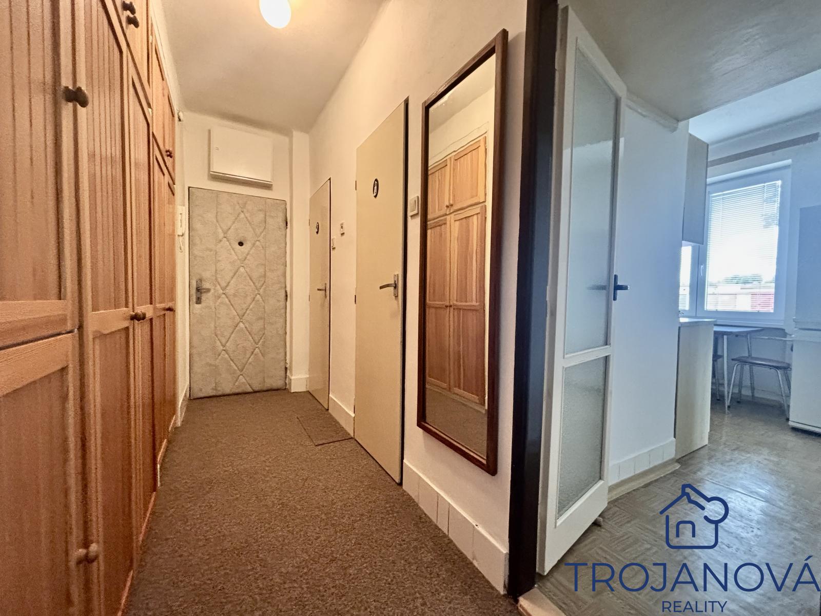 Byt prošel rekonstrukcí. Kuchyňská linka - sporák se sklokeramickou deskou, digestoř, obývací pokoj a ložnice. Koupelna se sprchovým koutem, WC samostatně, Na podlahách se nachází dlažba, koberce a PVC. K dispozici je lednice s mrazákem, pračka, vestavěné skříně na chodbě.