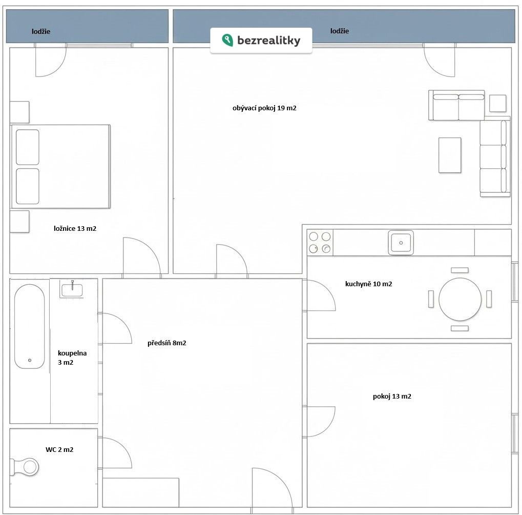• dvě samostatné lodžie o celkové ploše cca 7,5 m² – perfektní místo pro ranní kávu či odpočinek