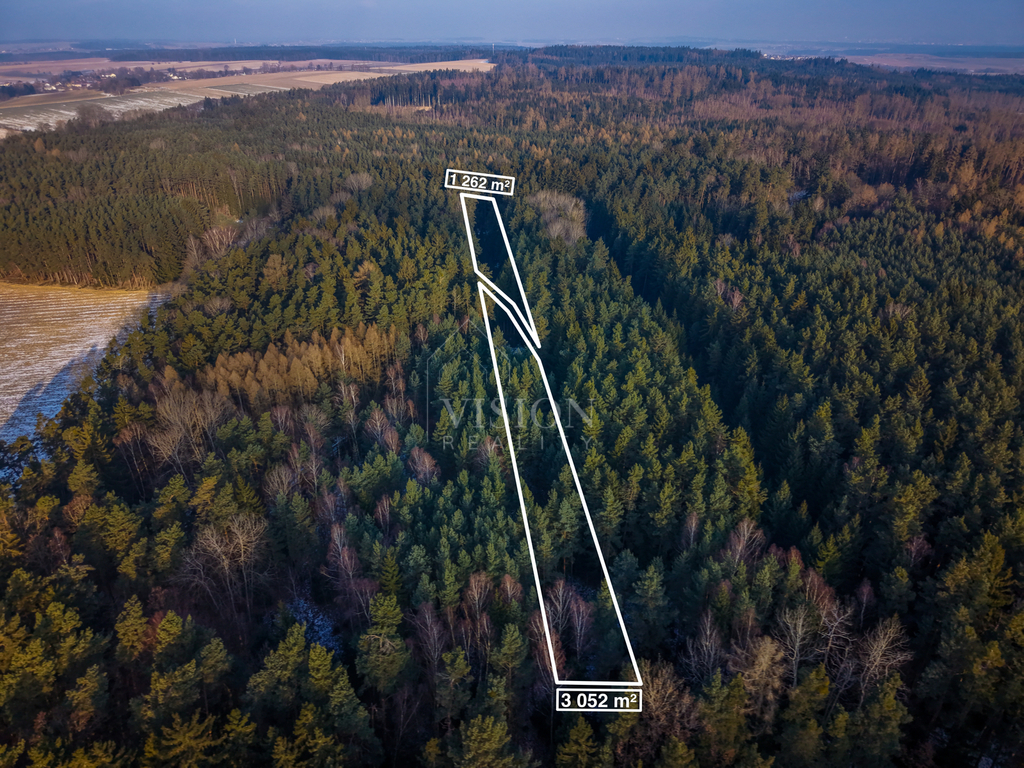 Dva lesní pozemky tvořící jeden celek rozdělený cestou o celkové výměře 4 314 m².