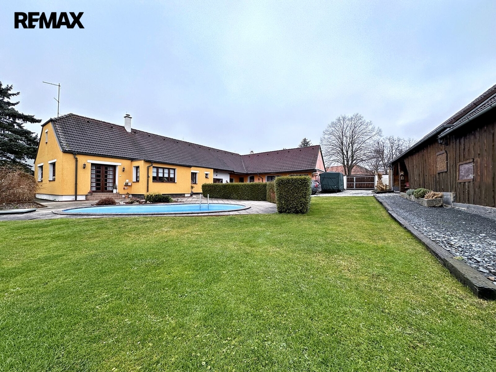 Nemovitost se nachází na rozsáhlém pozemku, který je rozdělen na několik částí. K relaxaci slouží velká zahrada s bazénem, saunou a pergolou se zděným krbem, ideálním místem pro rodinné oslavy či posezení s přáteli.