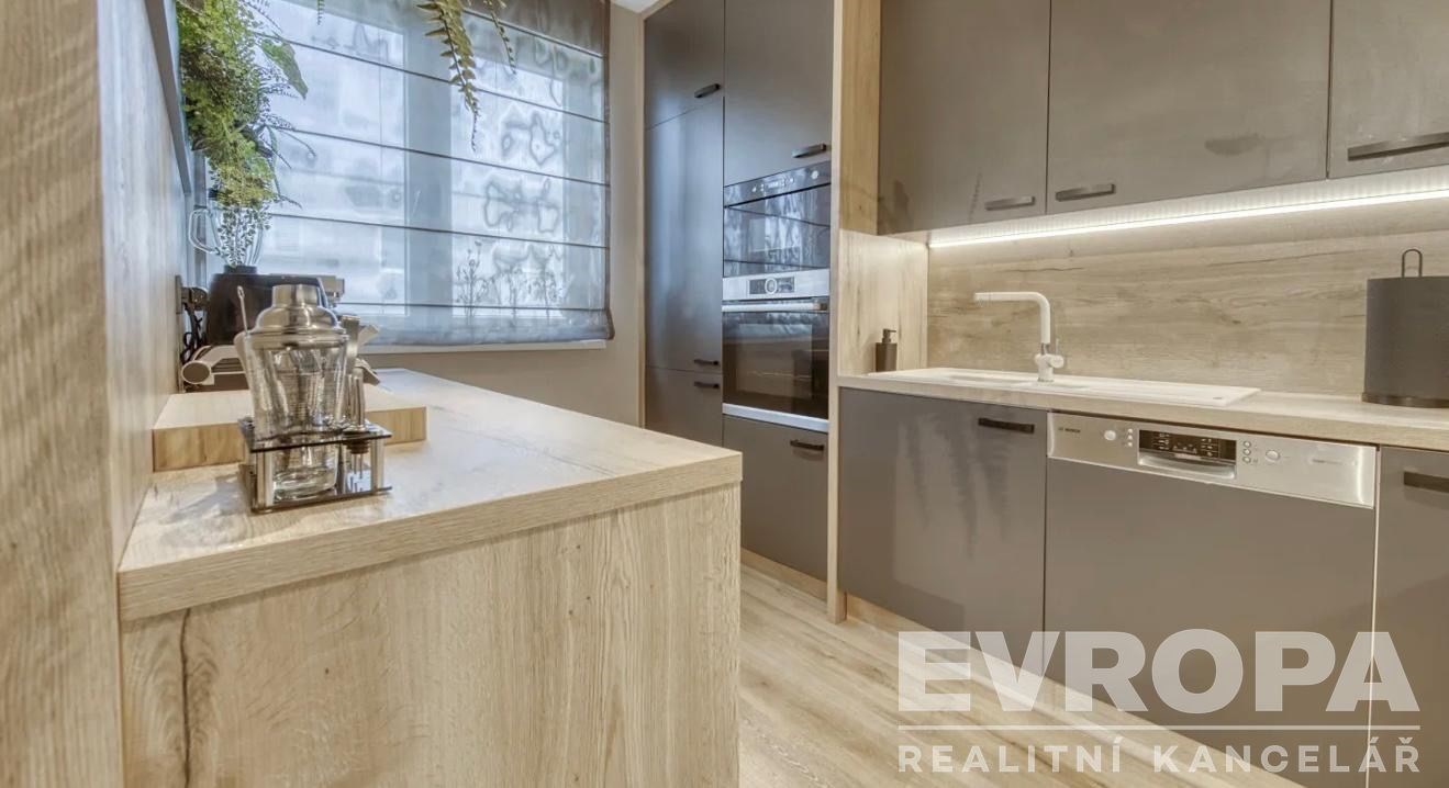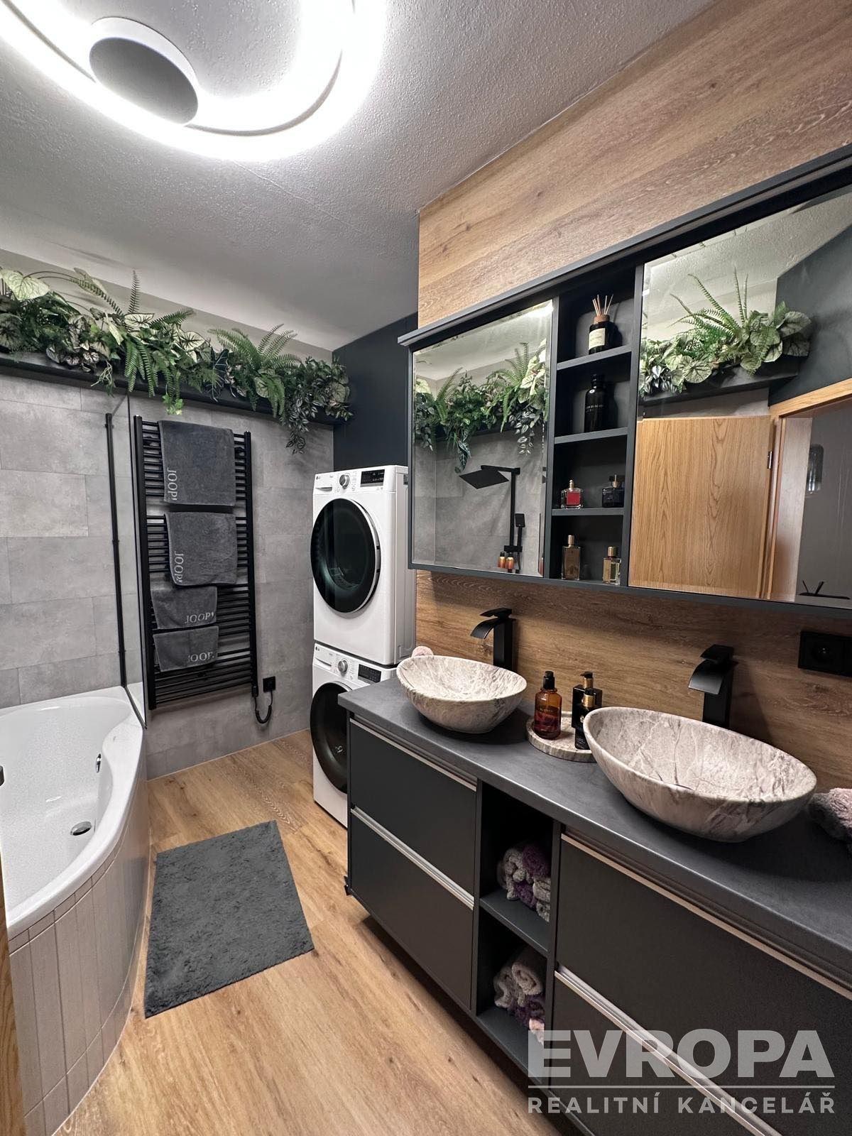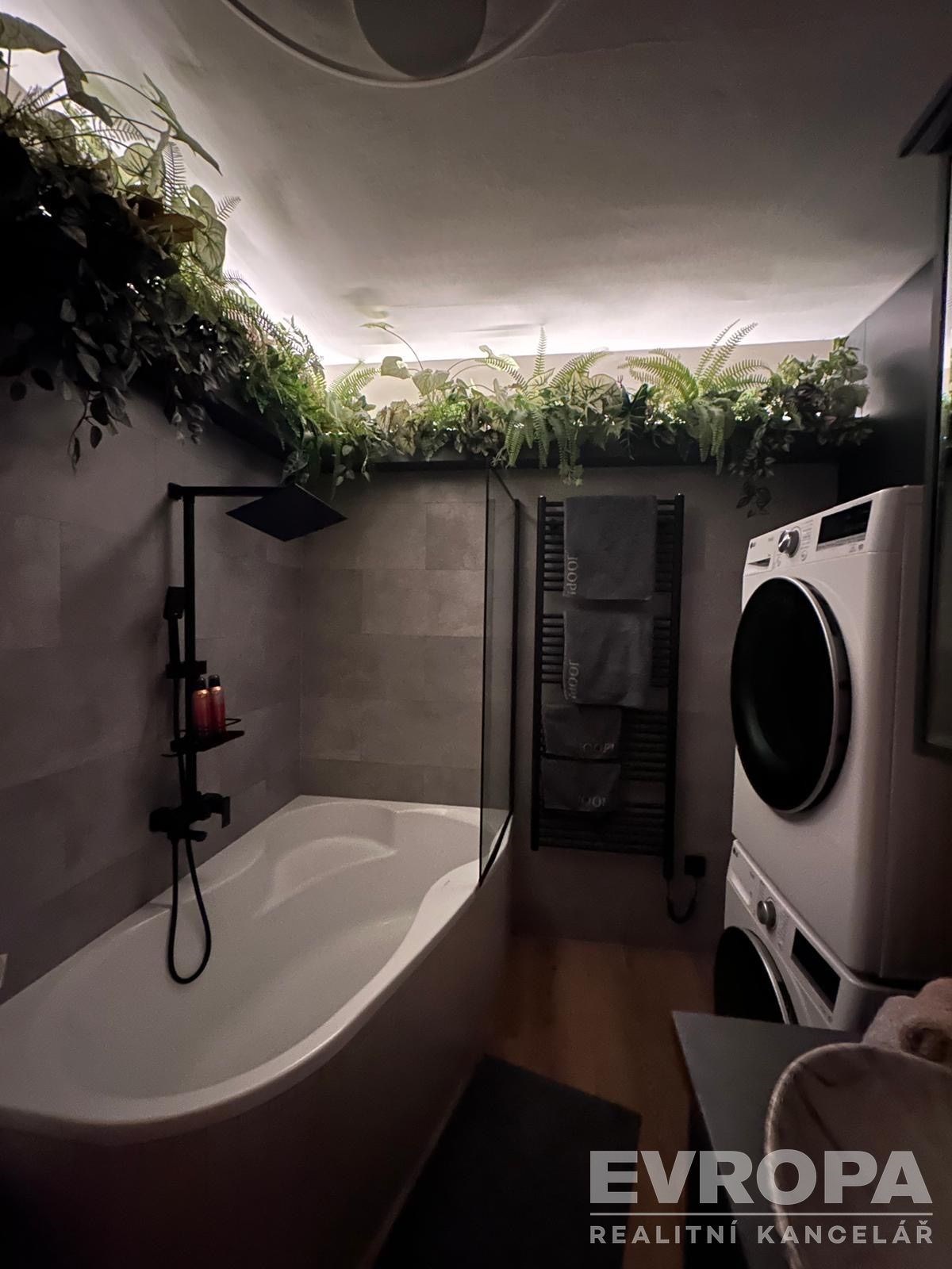 Byt vyniká nadstandardním provedením – bezfalcové interiérové dveře, kvalitní vinylové podlahy, bezpečnostní vstupní dveře, trojskla, elektrické podlahové vytápění v celém bytě, bodové osvětlení v SDK podhledech a značková sanita v koupelně i na WC.