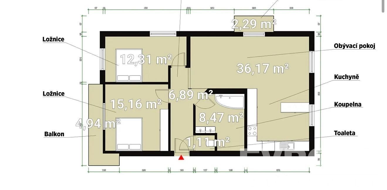 Dispozičně je byt řešen jako předsíň, samostatné WC, koupelna s vanou, dva pokoje a obývací pokoj s kuchyňským koutem včetně spotřebičů a přímým vstupem na prostornou terasu o velikosti 10 m2.