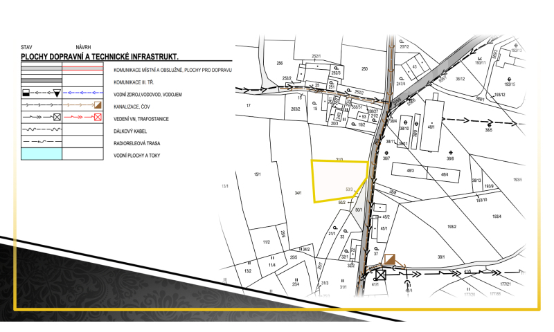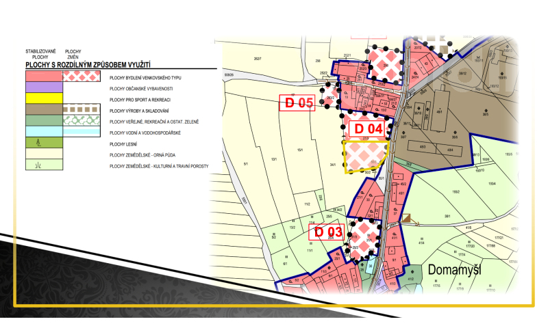 Stavební možnosti: určeno pro rodinné domy venkovského typu (přízemí + podkroví).