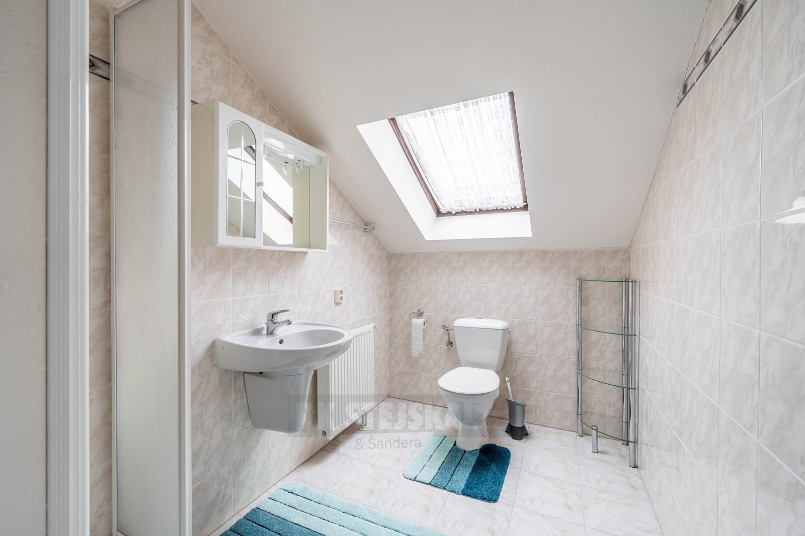 Prostorný rodinný dům z roku 1995, se třemi obytnými podlažími při obytném suterénu, přízemí a patru. Všechny tří podlaží mohou fungovat jako samostatné bytové jednotky. Větší upravený pozemek se zatravněnými plochami, se skalkami, záhony, dlážděným příjezdovým nádvořím, pochozími plochy a zahradním posezením se stahovací markýzou, rezervoárem srážkové užitkové vody s čerpadlem a rozvodem po zahradě.