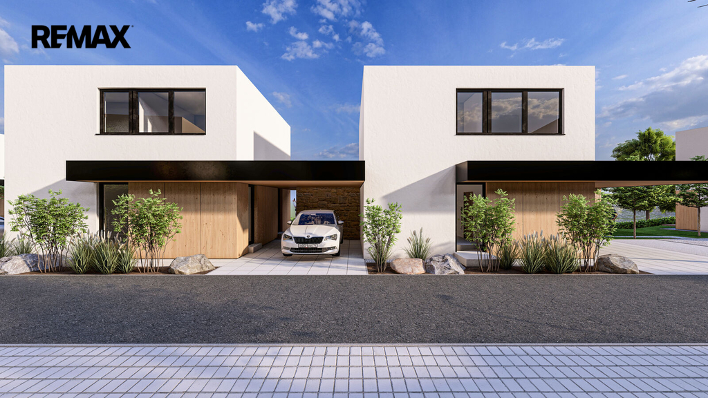 Domy ve spodní části projektu s plochou 95,08 m² a dispozicí 4+kk nabízí vzdušné a harmonické bydlení. Velká okna propojují interiér s přírodou a vpouštějí dovnitř spoustu denního světla. Při vstupu do domu vás přivítá prostorné zádveří, technická místnost a WC. Centrální částí domu je otevřený obývací prostor, propojený s kuchyňským koutem a jídelnou. Dům nabízí přímý vstup na krytou vydlážděnou terasu s nádherným výhledem. Horní patro je oázou klidu a soukromí. Tři neprůchozí pokoje a hlavní koupelna jsou navrženy tak, aby vyhovovaly všem potřebám klientů.