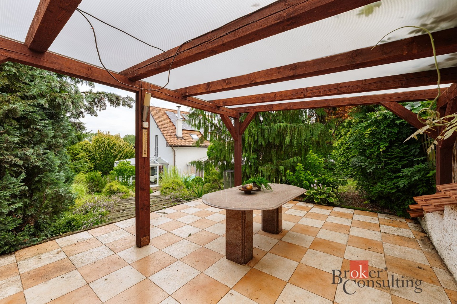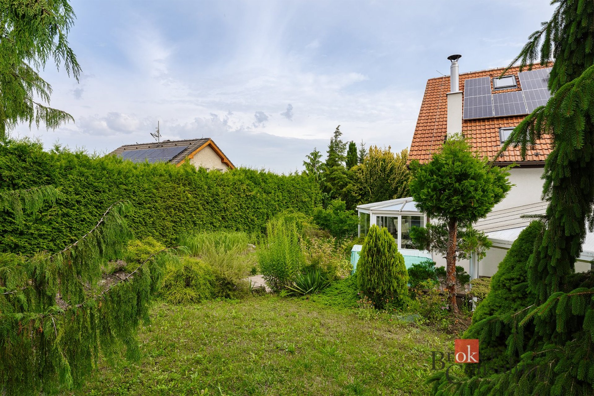 Nádherná udržovaná zahrada nabízí ideální prostor pro relaxaci a venkovní aktivity. Zimní zahrada přináší pocit harmonie s přírodou po celý rok.