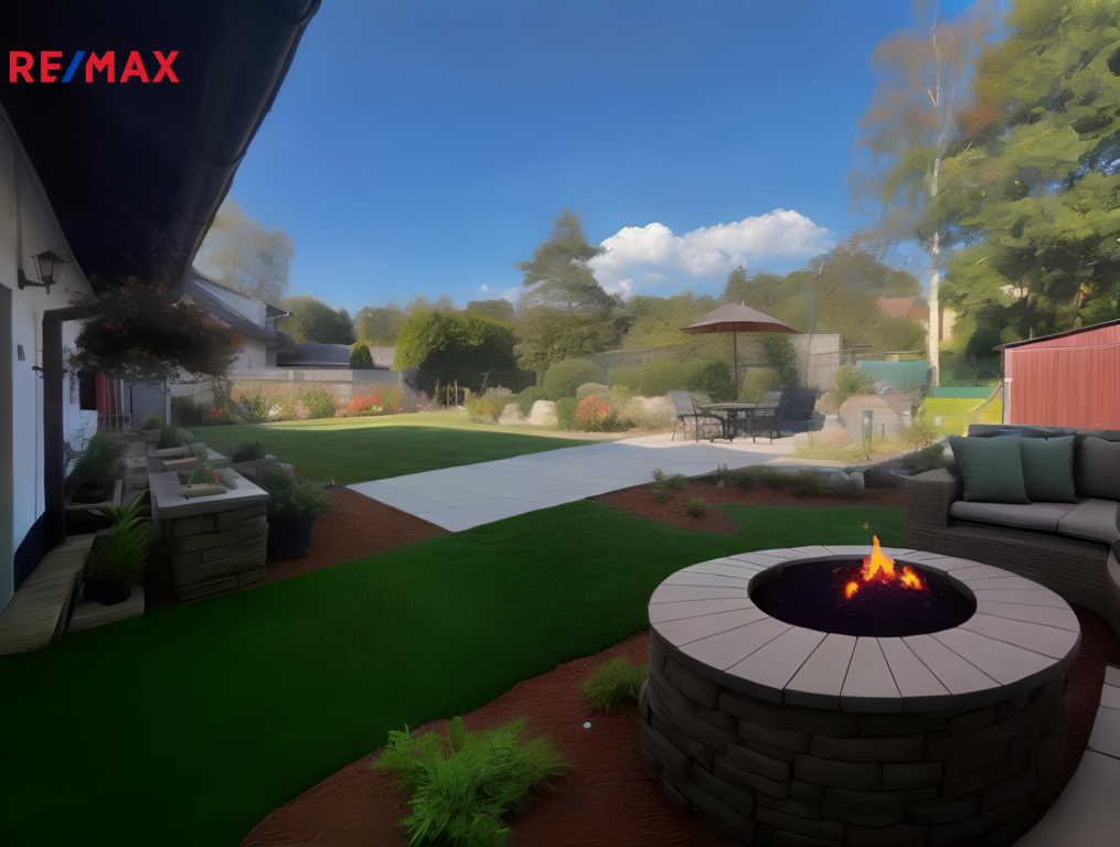 Vlastní příjezdovou cestou po průjezdu plně automatickými vraty se dostanete na zpevněné parkoviště za domem. Brána má i samostatné ovládání pro ubytované hosty. Prostorná zahrada vybízí k posezení u krbu pod dřevěnou pergolou, nebo novému využití dle přiložené vizualizace. Vaše hosty jistě příjemně překvapí krytý venkovní bazén o velikosti 18 m2 s integrovaným tepelným čerpadlem.