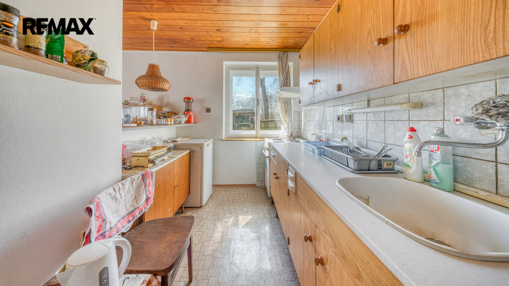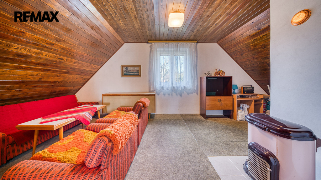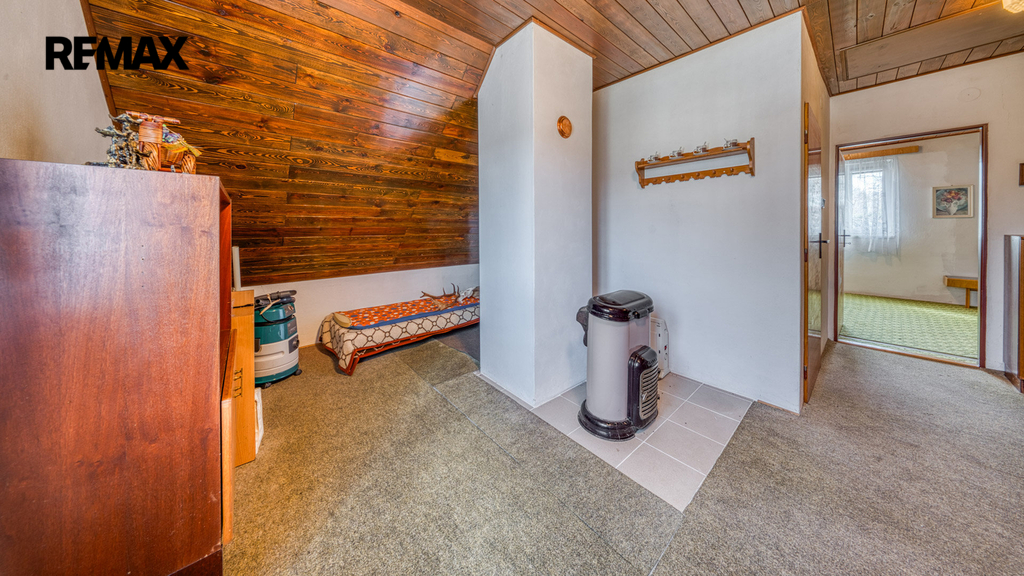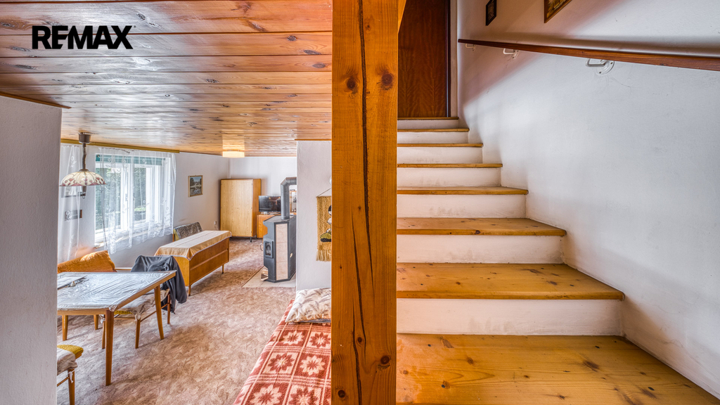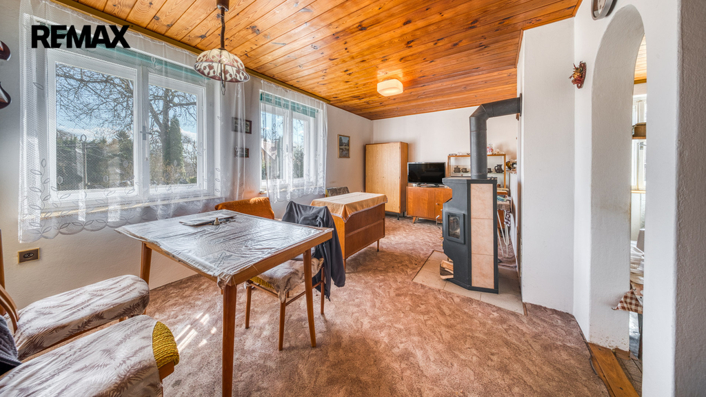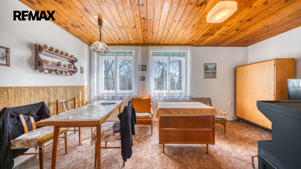 Interiér je převážně v původním, udržovaném stavu. Pro někoho představuje příležitost k modernizaci dle vlastního vkusu, pro jiného si zachovává autentický charakter klasické rekreační chaty, který nebude chtít měnit.