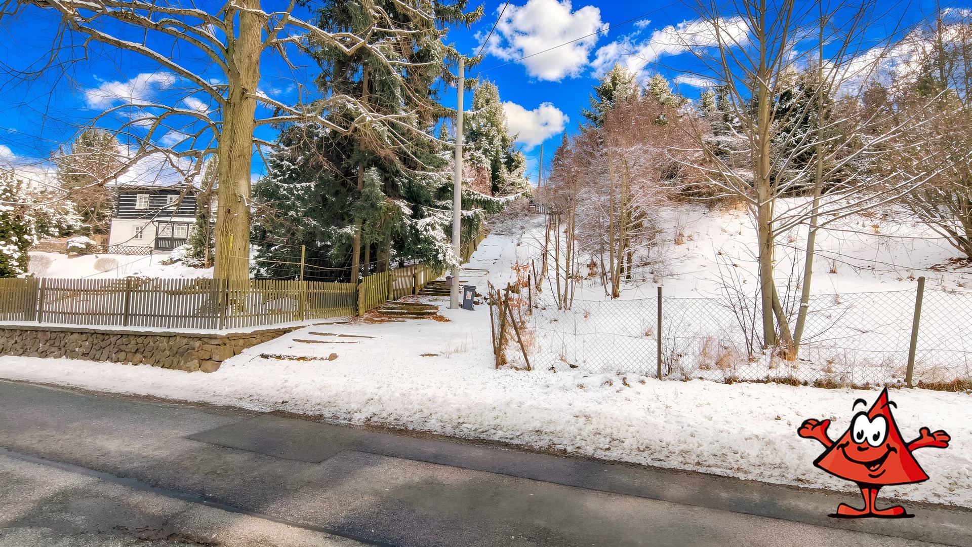 Parcela je svažitá (cca 21 %), což umožňuje zajímavé architektonické řešení domu s terasami a výhledem – typ, který je mezi architekty velmi vyhledávaný.