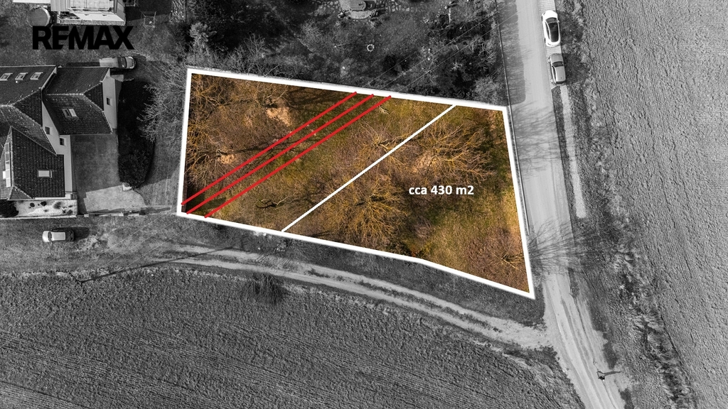 Nad částí pozemku vede nadzemní vedení vysokého napětí s ochranným pásmem cca 7 m na každou stranu, kde není možné umisťovat stavby, ale lze využívat jako zahradu. I přes toto omezení zůstává dostatečný prostor pro umístění rodinného domu.