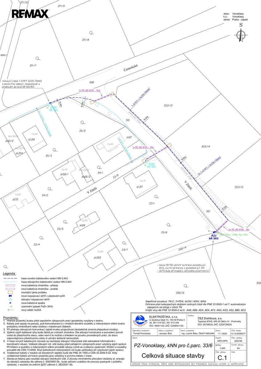 elektřina v procesu řešení (ČEZ – pilíř na hranici pozemku)