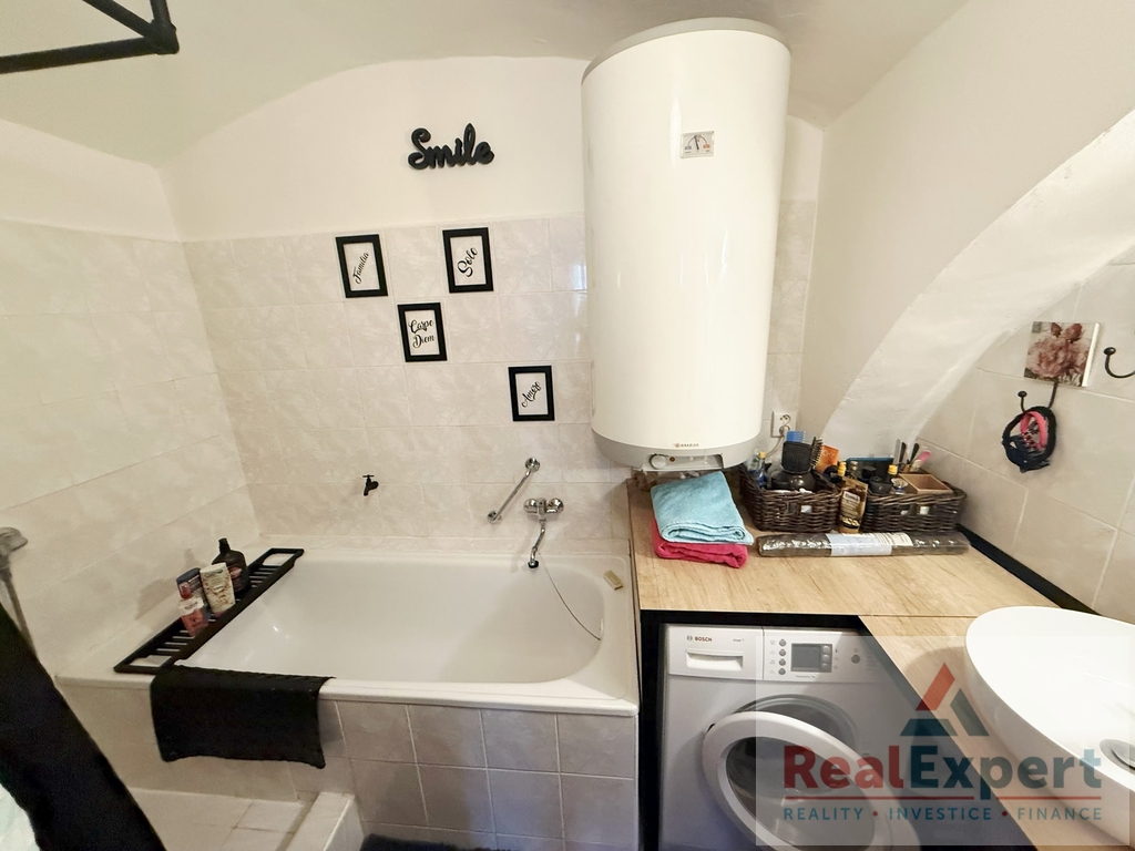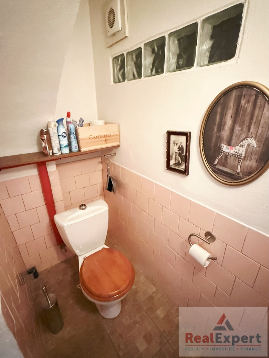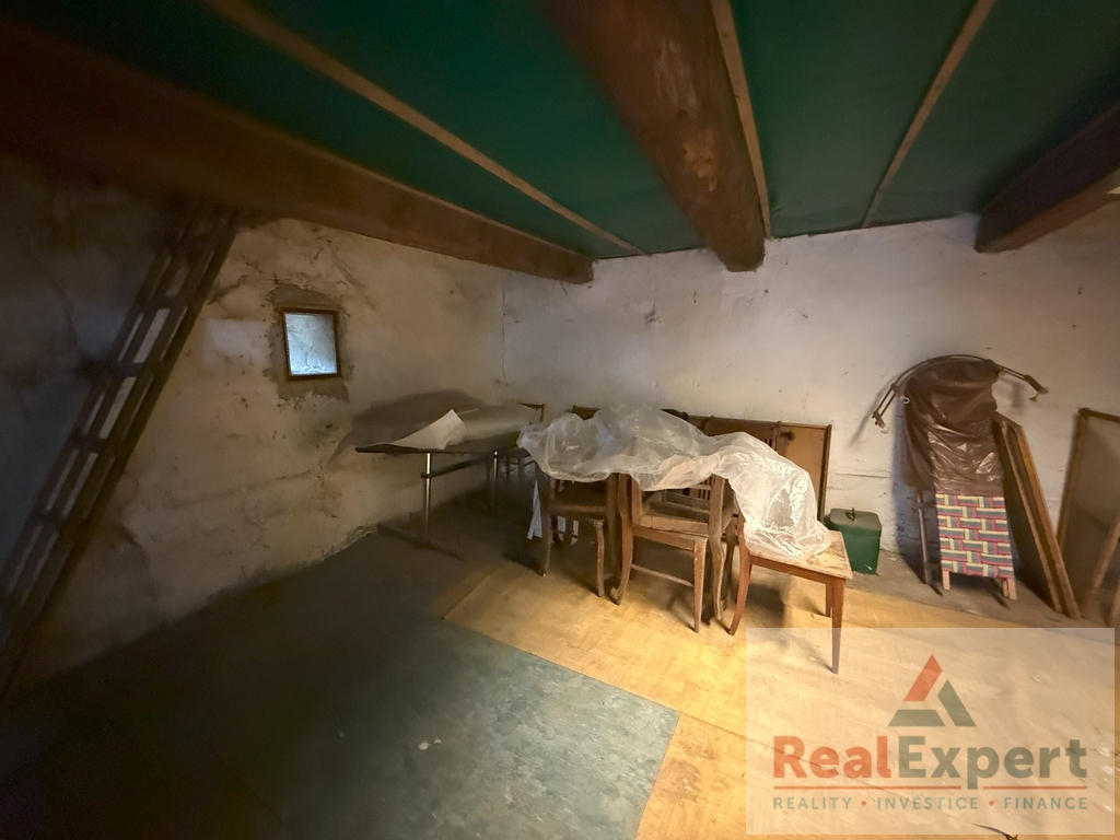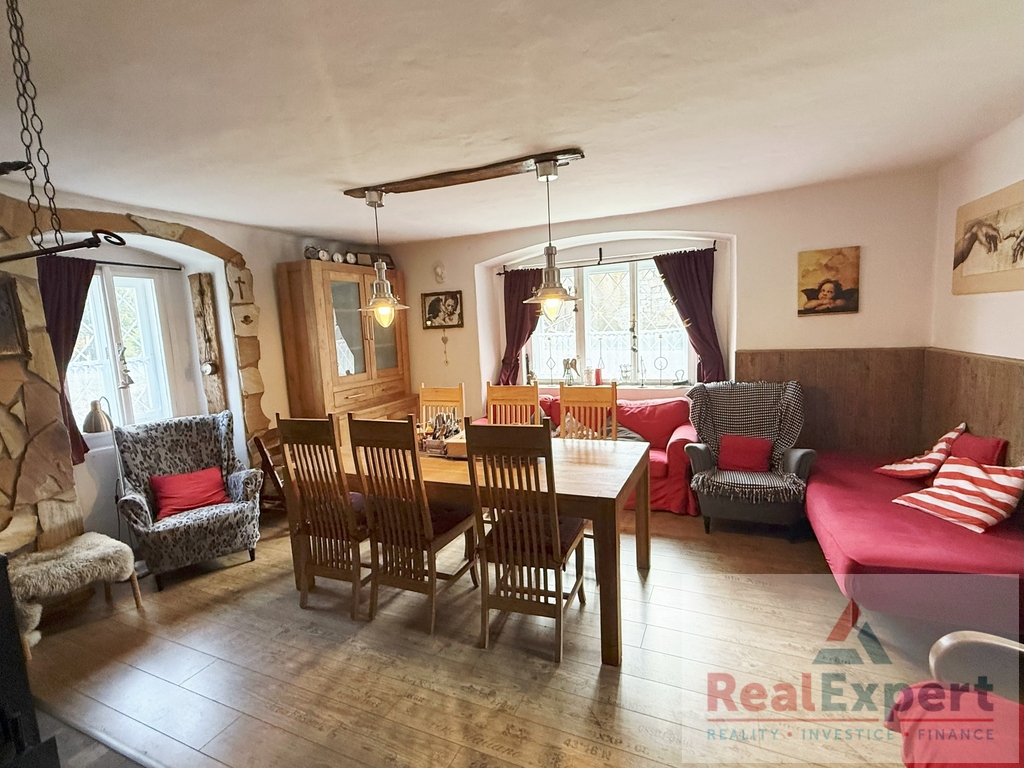 Dvoupodlažní dům o dispozičním řešení 5+1 (zastavěná plocha 19,5 x 6,8 m), s užitnou plochou cca 200 m² (+prostorná půda) a tradiční architekturou prošel v minulých letech citlivou rekonstrukcí, která zachovala původní ráz stavby. Najdete zde 4 prostorné pokoje (ložnice), stylový obývací prostor s jídelnou a krbovými kamny, vybavenou kuchyni, koupelnu a WC. Interiér spojuje přirozené materiály a moderní pohodlí – dřevěné podlahy, dekorativní trámy i výhled do zeleně. K dispozici je dále dílna, sklípek a garáž (6x3 m)