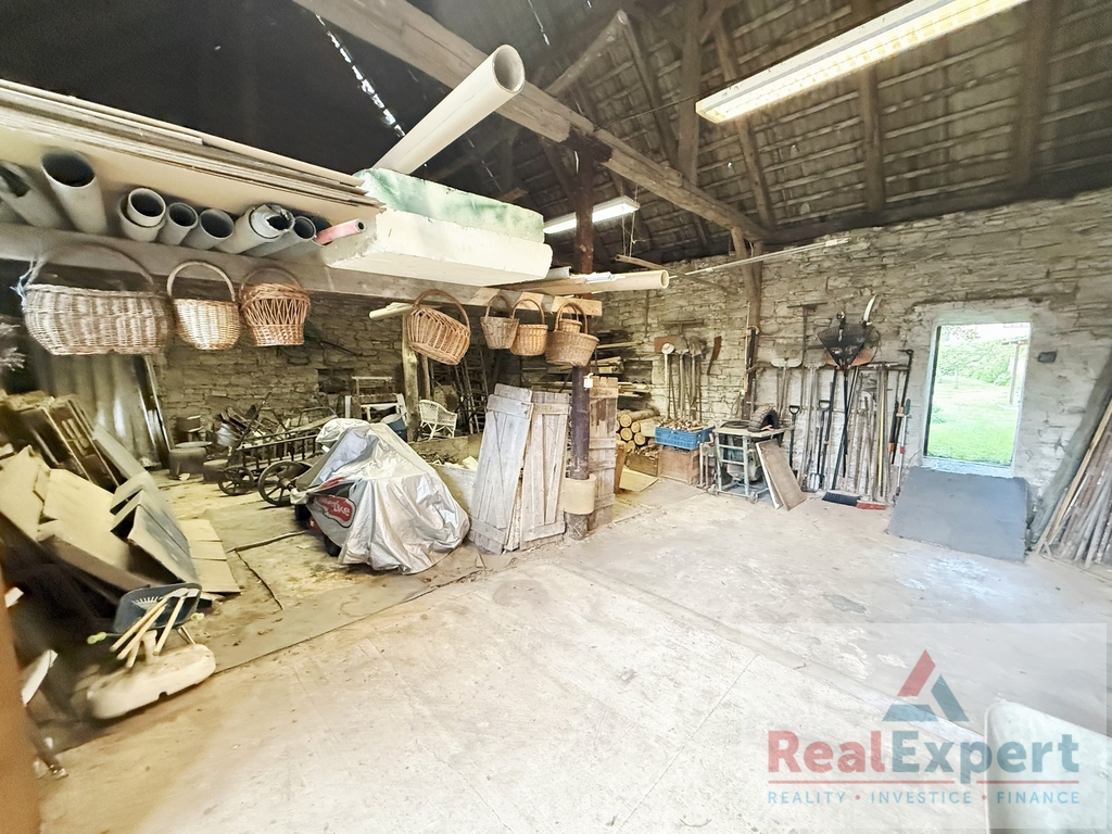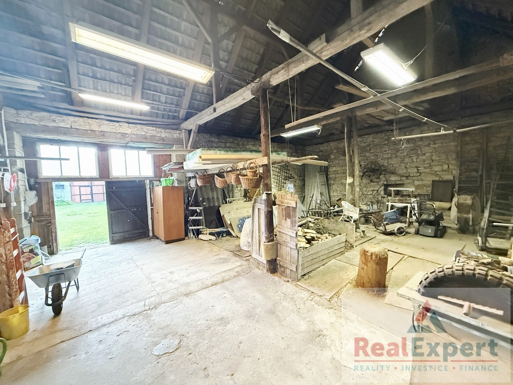Původní zemědělské objekty jsou v dobrém technickém stavu, stodola má výšku stropu v nejvyšším bodě 8 metrů, objekty nabízejí široké možnosti využití – od skladovacích prostor přes ateliér až po rekonstrukci na apartmány či stylové wellness. Součástí hospodářského stavení je i kamenný sklep cca 35 m2.