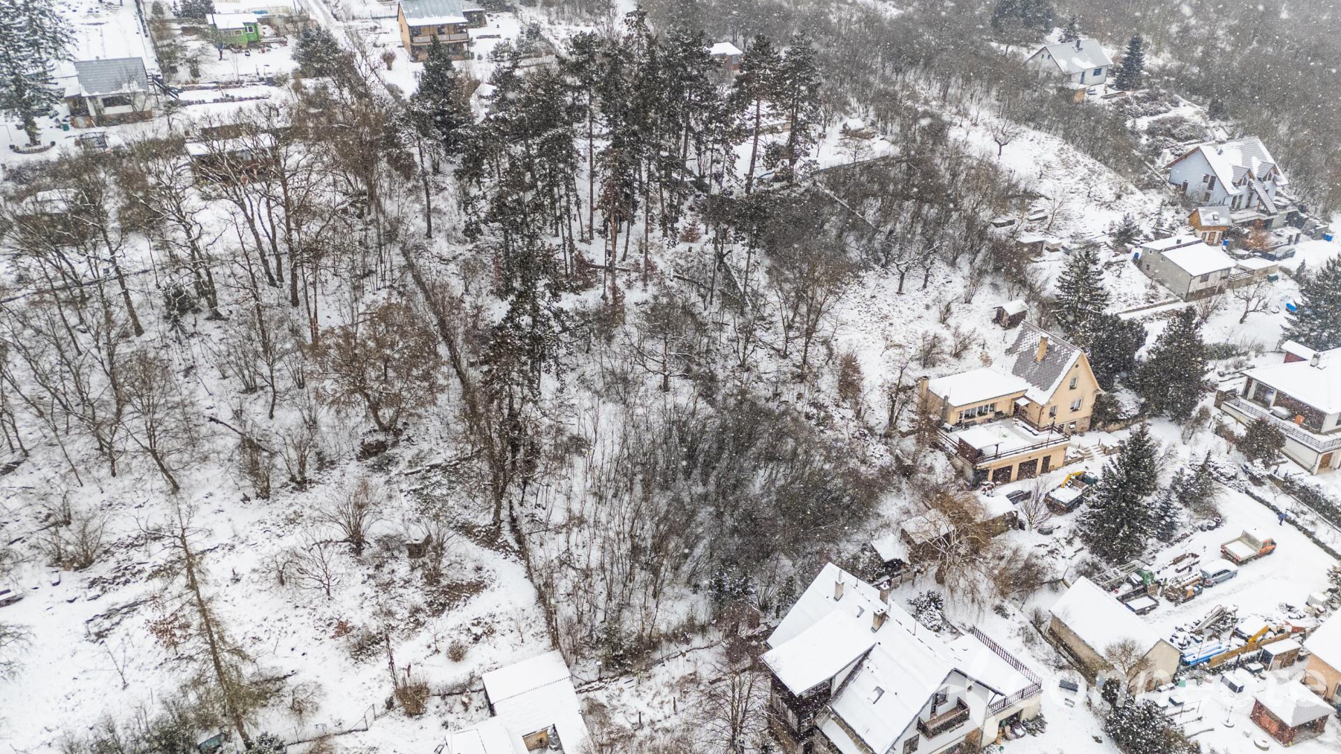 - horní část tvoří dvě rovné terasy o celkové ploše cca 800 m, ideální pro umístění rodinného domu